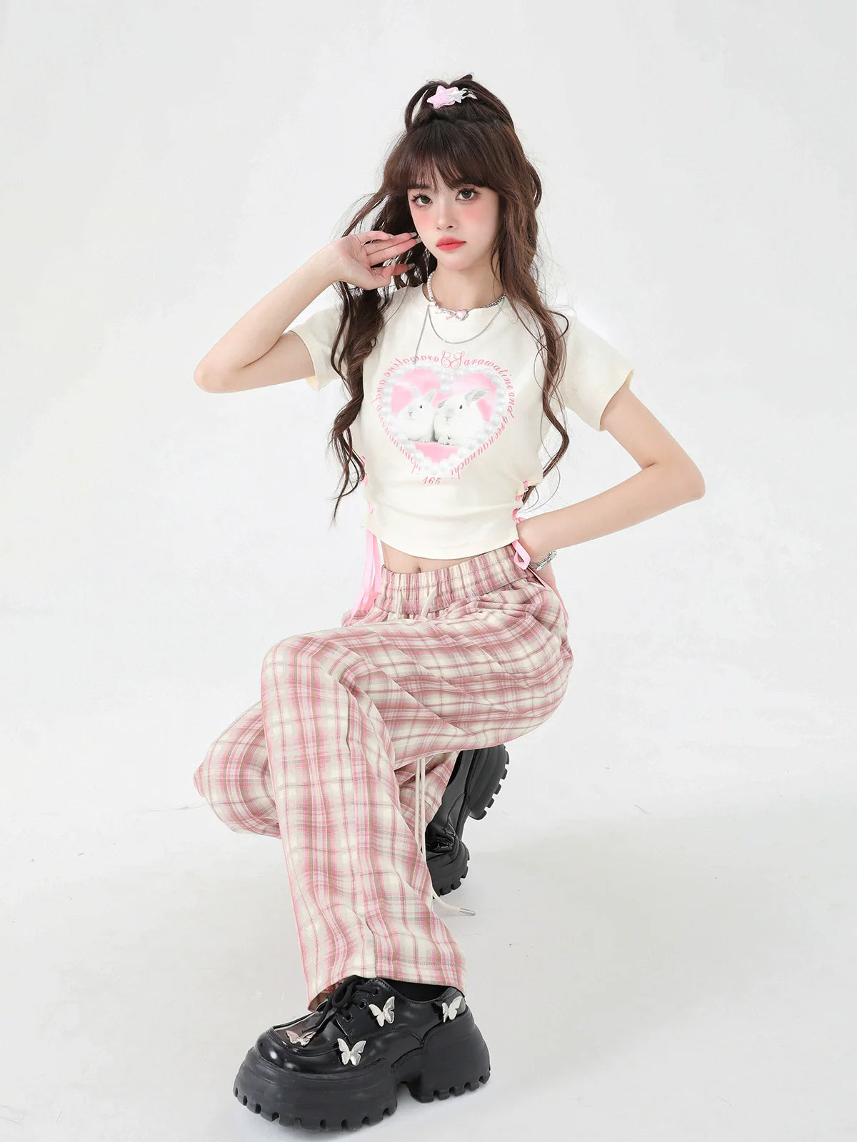 チャーミングなピンクのチェックパンツは、カジュアルなお出かけにぴったり。上質な生地を使用し、快適な着心地とスタイリッシュなルックスを実現。この愛らしいパンツで、ワードローブをワンランクアップさせましょう。