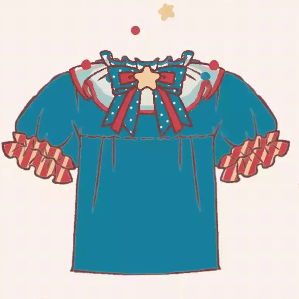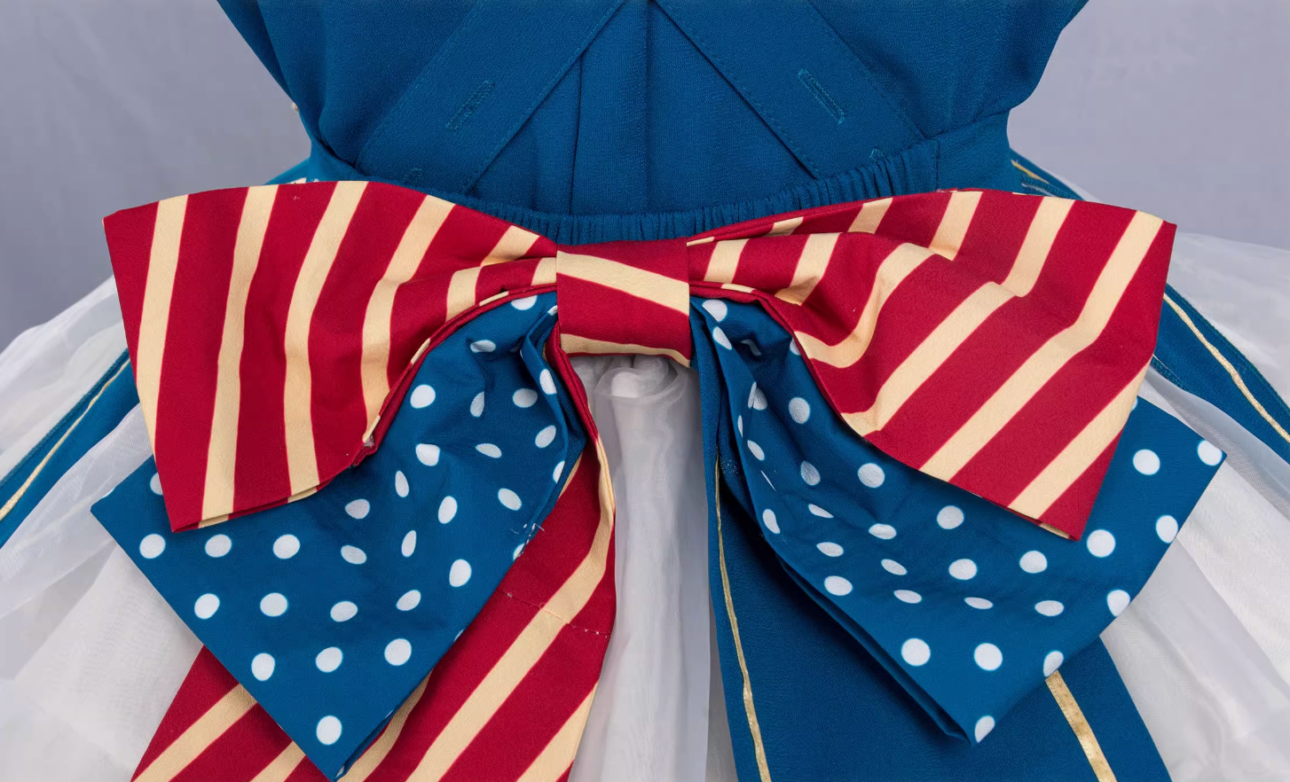 青と白のオールドスクールロリータファッションドレス 蝶結びディテール JSK セット