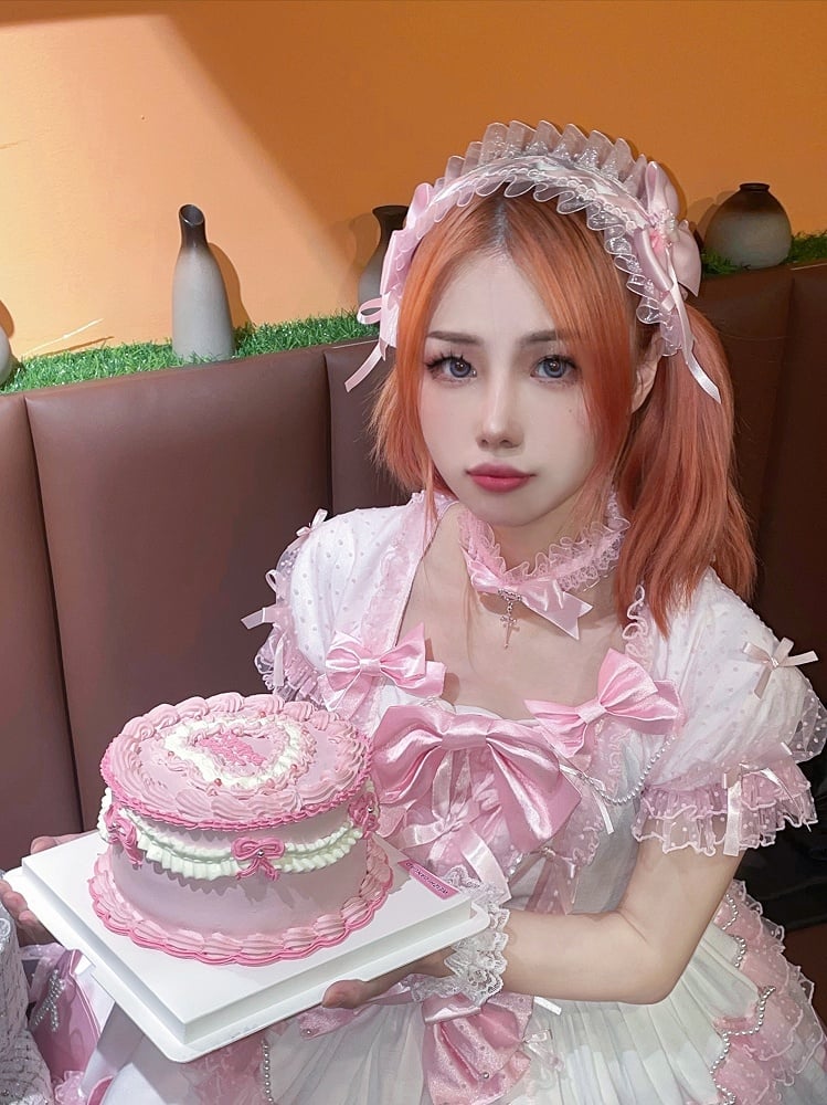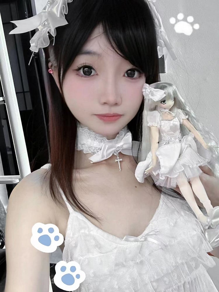 ホワイトとピンクのロリータボンネットチョーカー