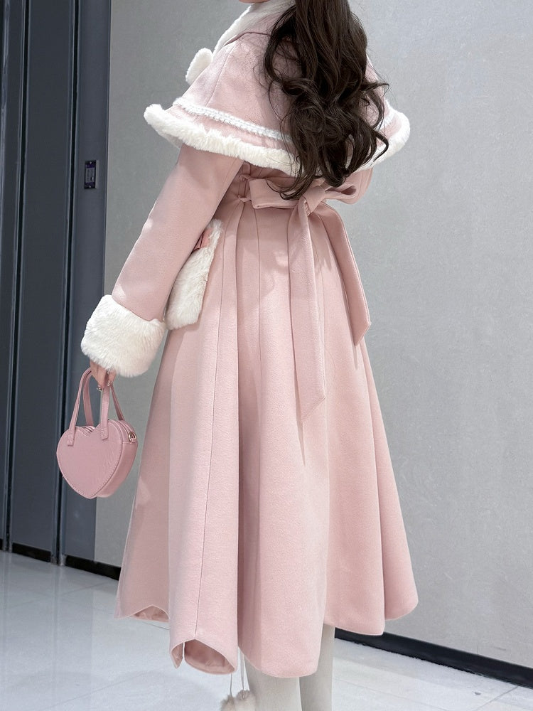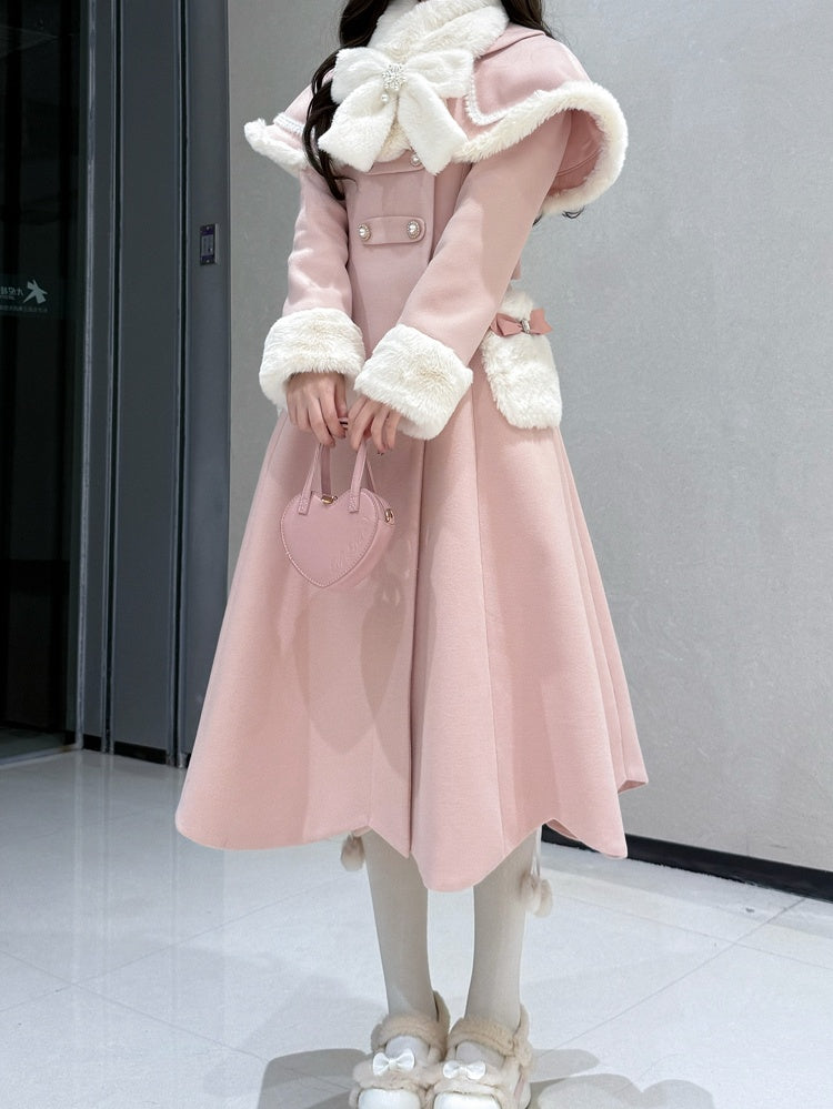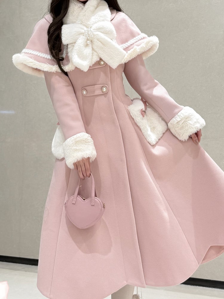 ピンクのケープとスカラップエッジのトリム、そして豪華な蝶結びスカーフがついたロリータコートは、可愛らしさと着心地の両方を兼ね備えています。スカラップエッジが遊び心をプラスし、豪華な蝶結びスカーフが暖かくスタイリッシュな印象を与えます。個性的でファッショナブルなコートをお探しの、ファッションに敏感な方にぴったりです。