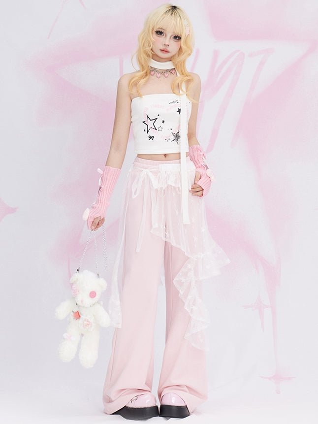 ピンクと白のオールドスクールロリータファッションドレス、蝶結びディテール、ロリータJSKセット