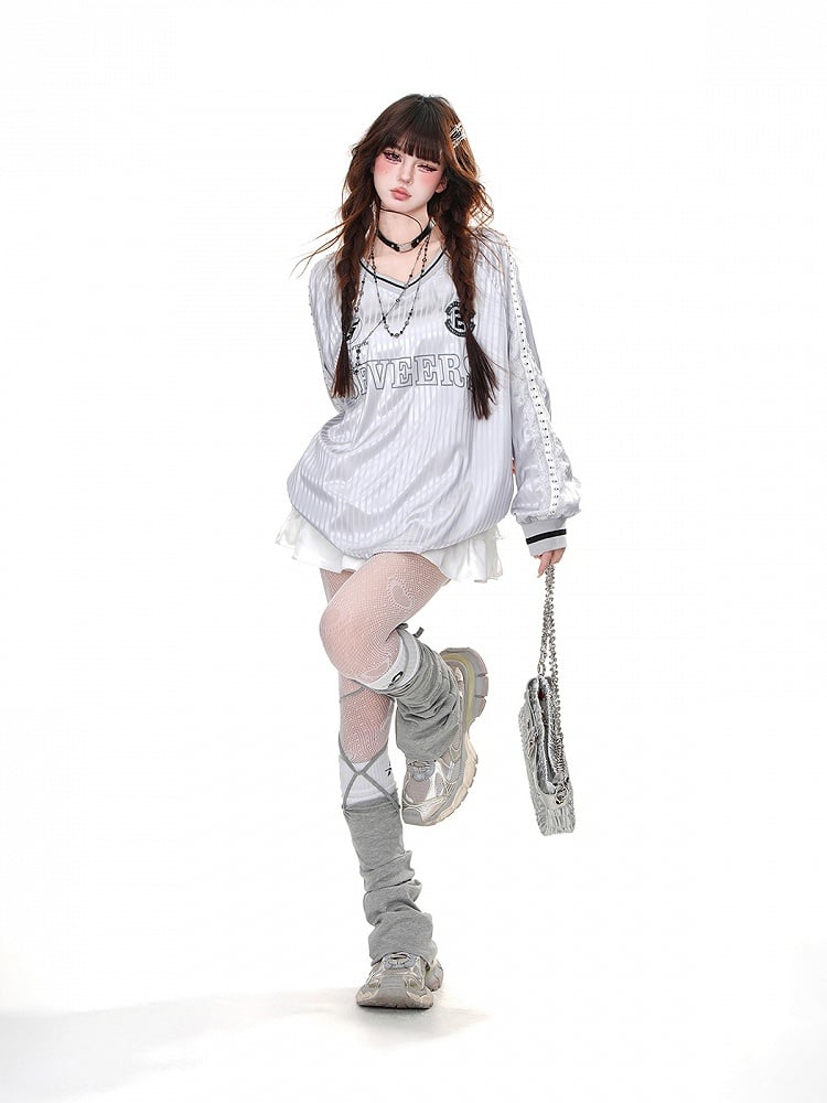 ピンク/グレーのストライプ柄Vネックルーズスウェットシャツは、可愛らしさと着心地の両方を兼ね備えています。定番のVネックデザインにストライプ柄が遊び心をプラスし、ゆったりとしたフィット感がリラックスした着心地を提供します。カジュアルなお出かけにも、お家でのくつろぎにもぴったりです。