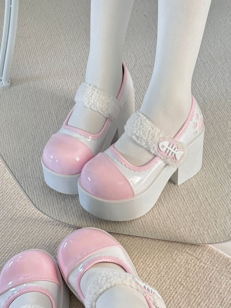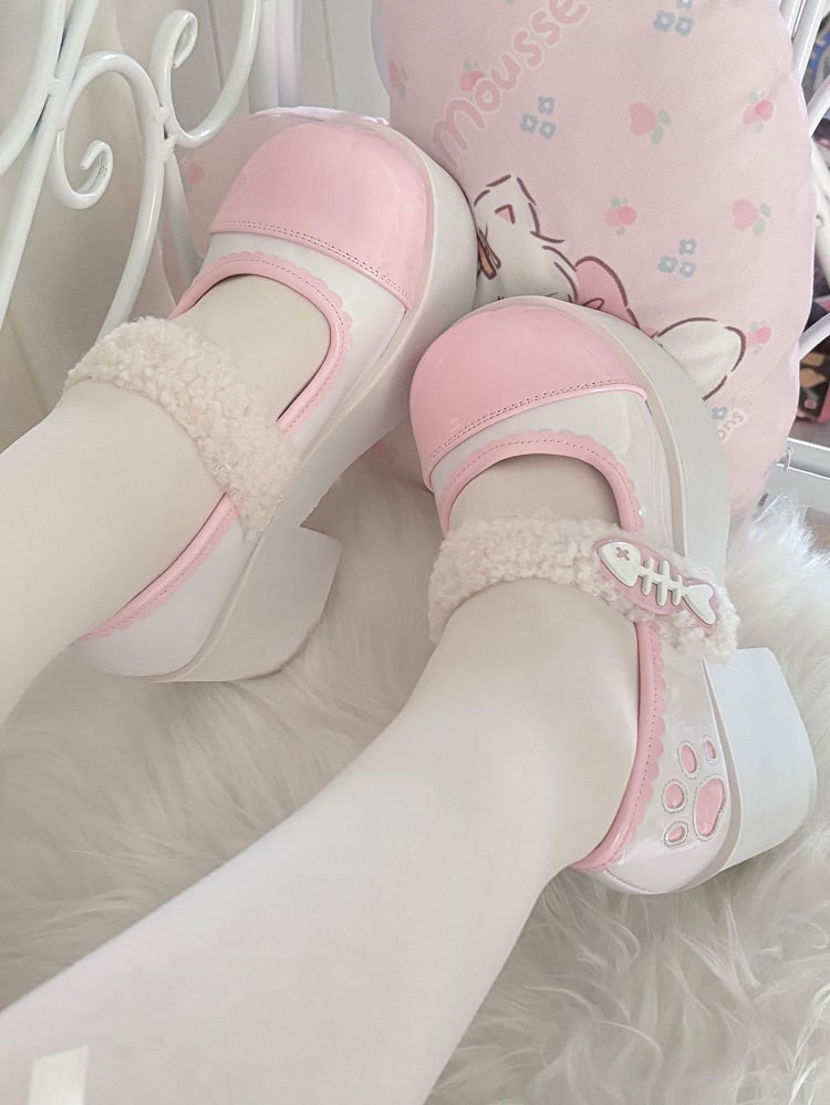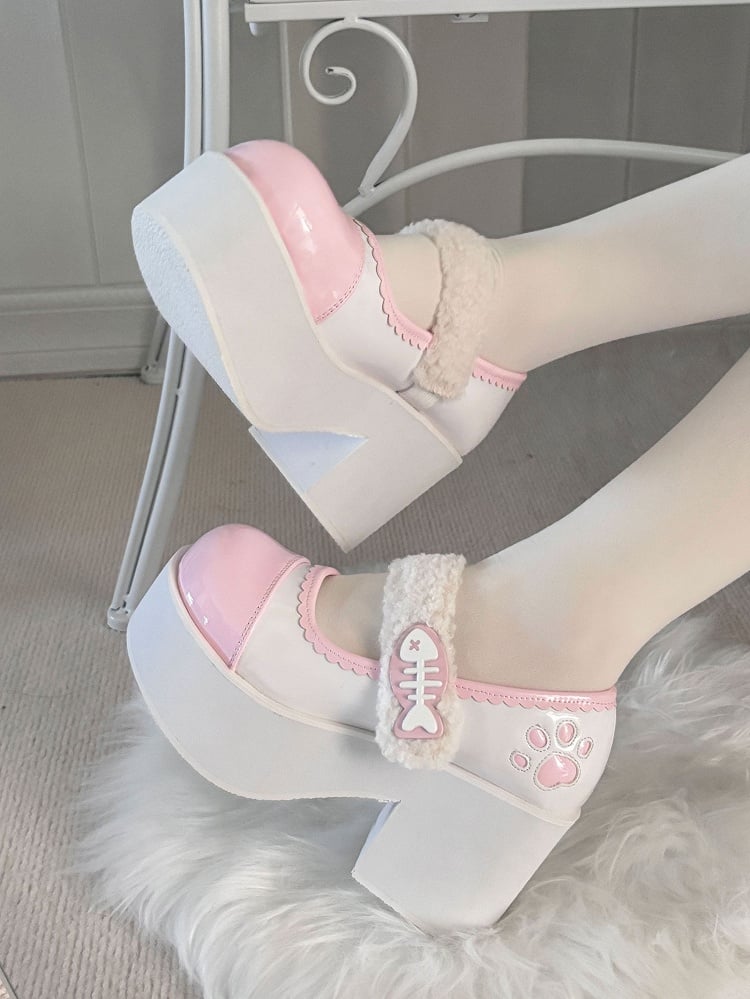 ピンク ジライケイ クロー フィッシュボーン プラットフォーム シューズ
