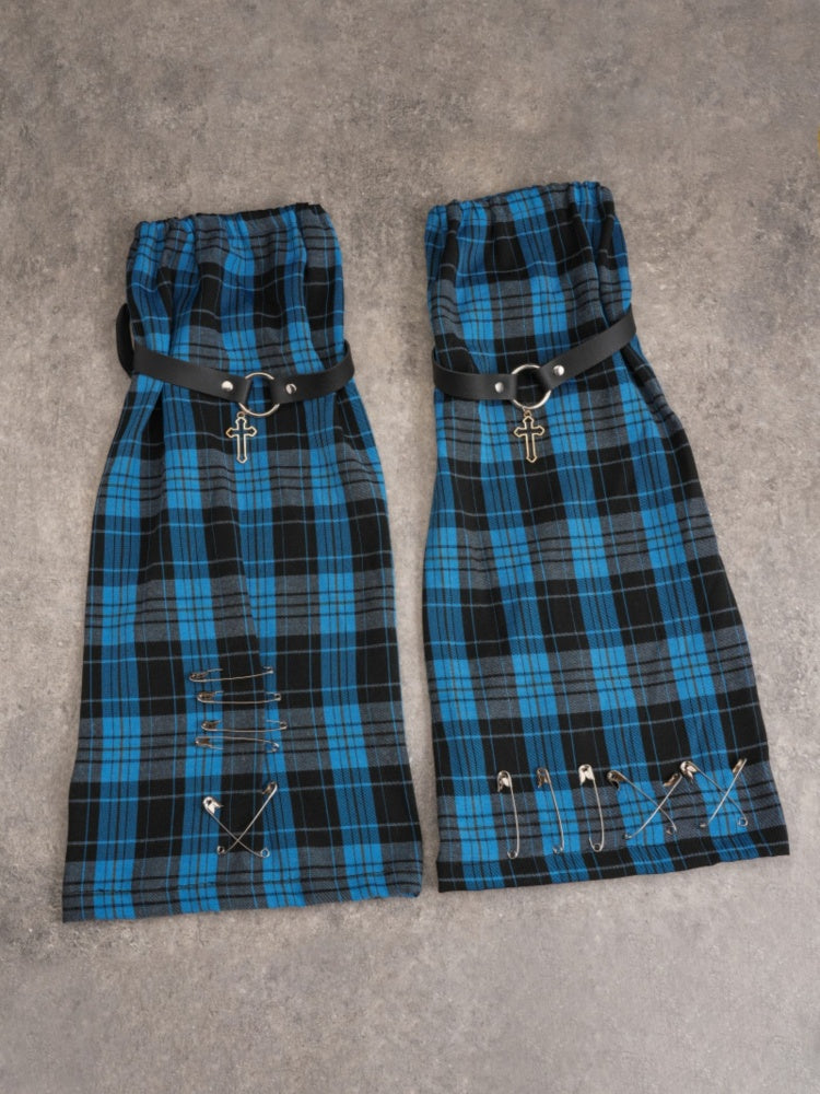 ピンズ ブラック&ブルー チェック柄 レッグスリーブ