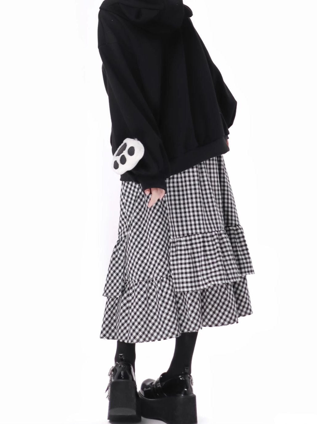 プラッシュブラックフードスウェットチェストロングシンギングロングスカートスーツ