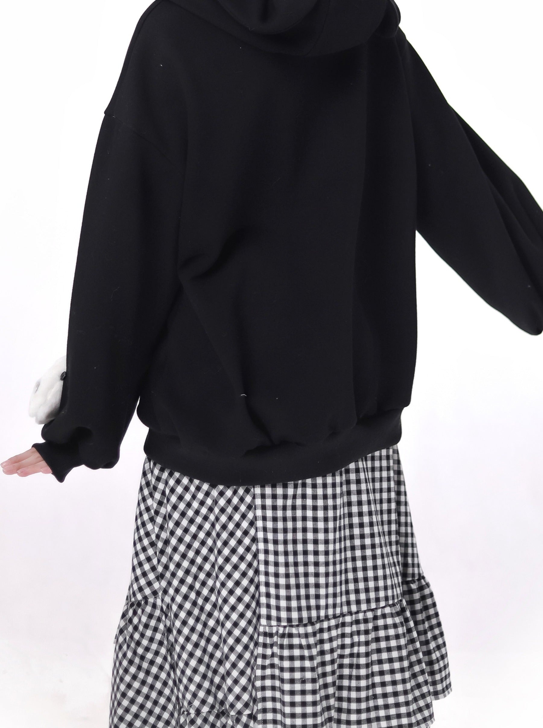 プラッシュ ブラック フードスウェット チェストロング シンギングロングスカートスーツで、快適でキュートな装いを。この愛らしい一着は一日中着られるので、お出かけの時も、家でくつろぐ時もスタイリッシュに決まります。つまらないスウェットスーツとはお別れして、究極のキュートさを手に入れましょう。