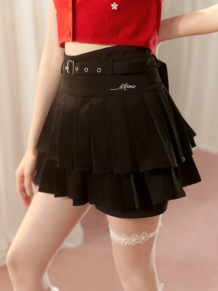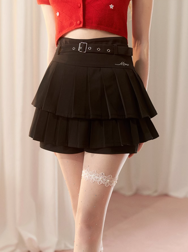 プリーツスカート ウエストハイ ショート ロゴ