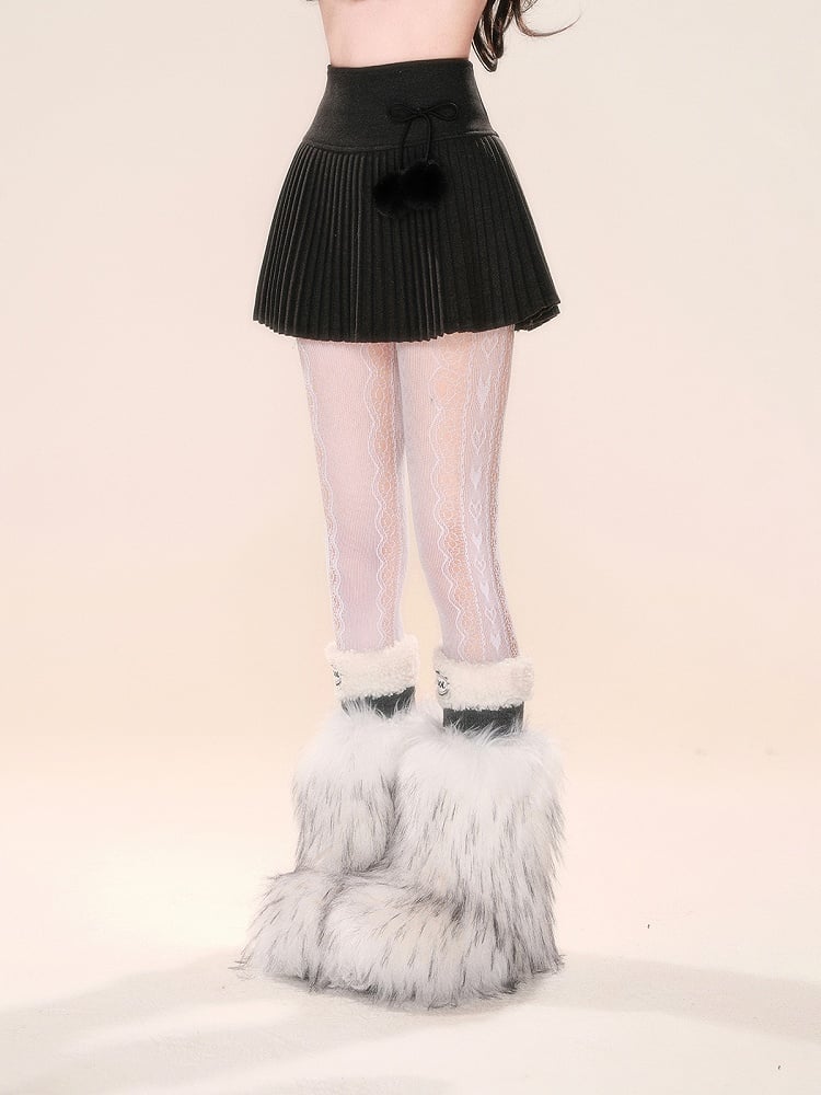 取り外し可能なポンポンとリボン飾りが付いたプリーツスカート
