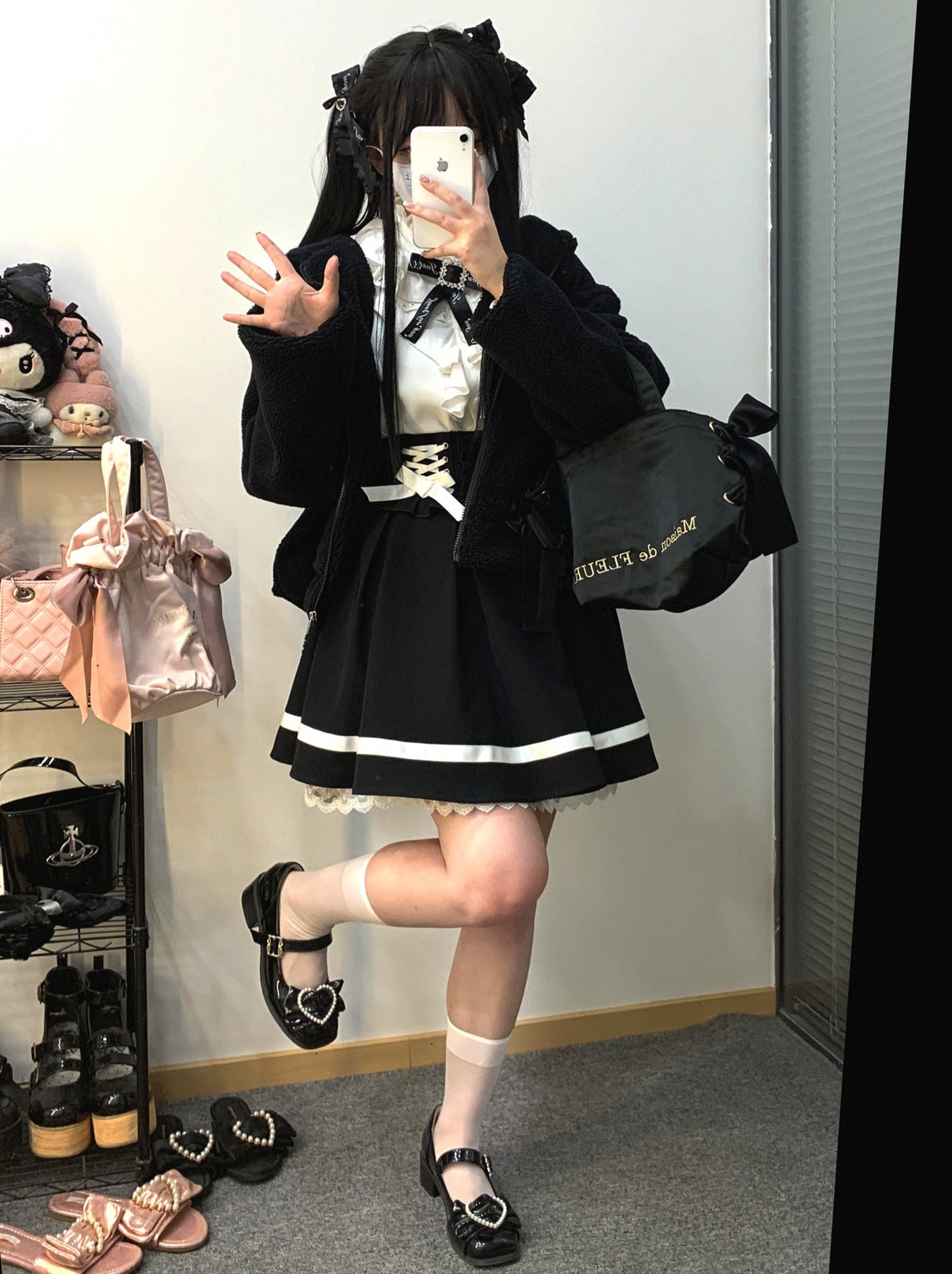 黒と白のオールドスクールロリータファッションドレス蝶結びロリータJSKセット