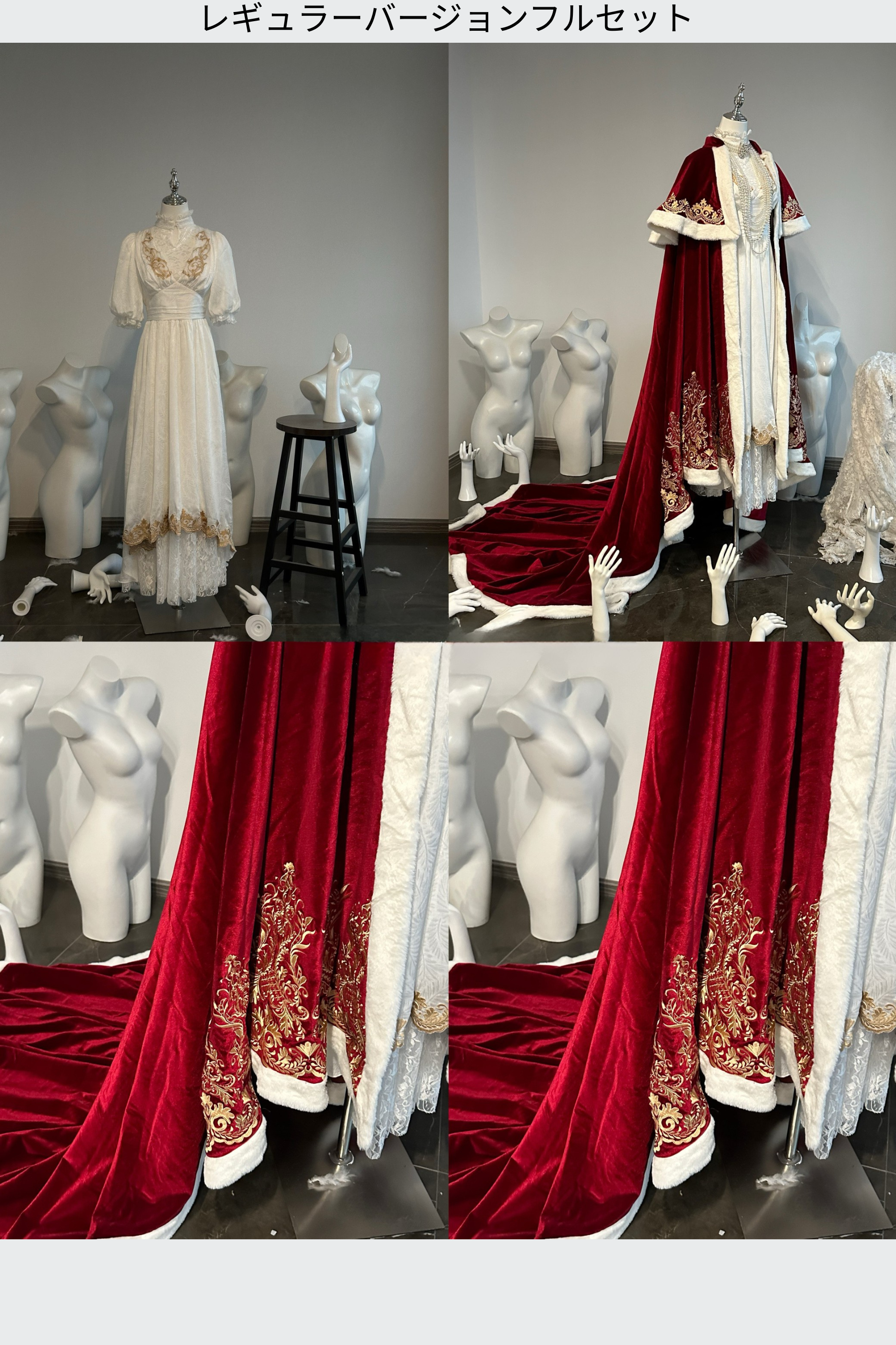 ドレス 通常バージョン フルセット内容 ホワイトドレス + レースロングスリーブ + ロングケープマント。