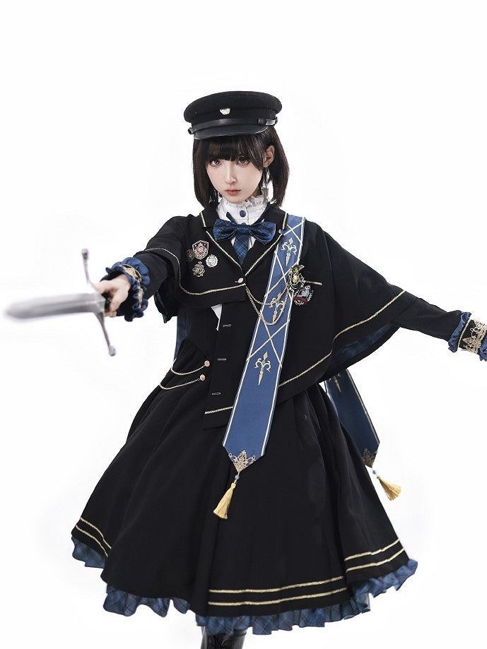青と白のオールドスクールロリータファッションドレス 蝶結びディテール JSK セット