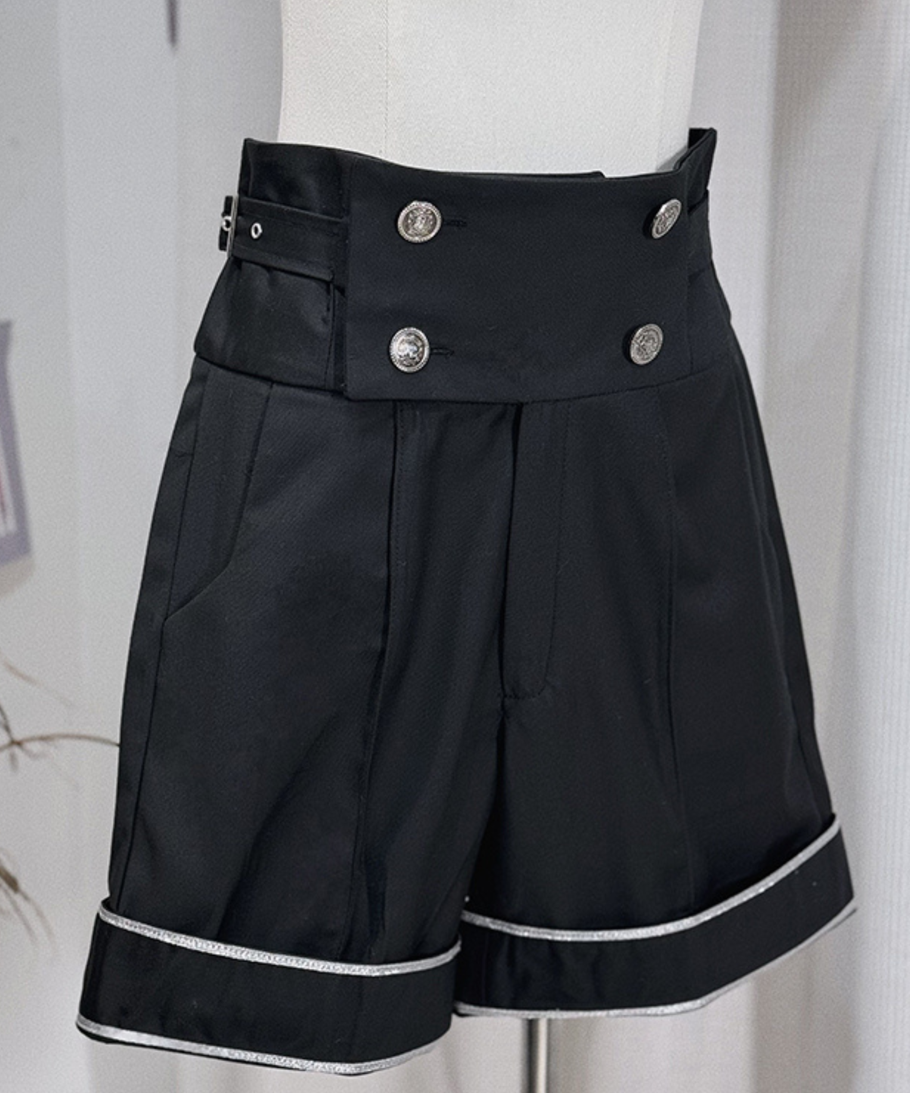 シルバートリムサイドベルトブラックショートパンツ