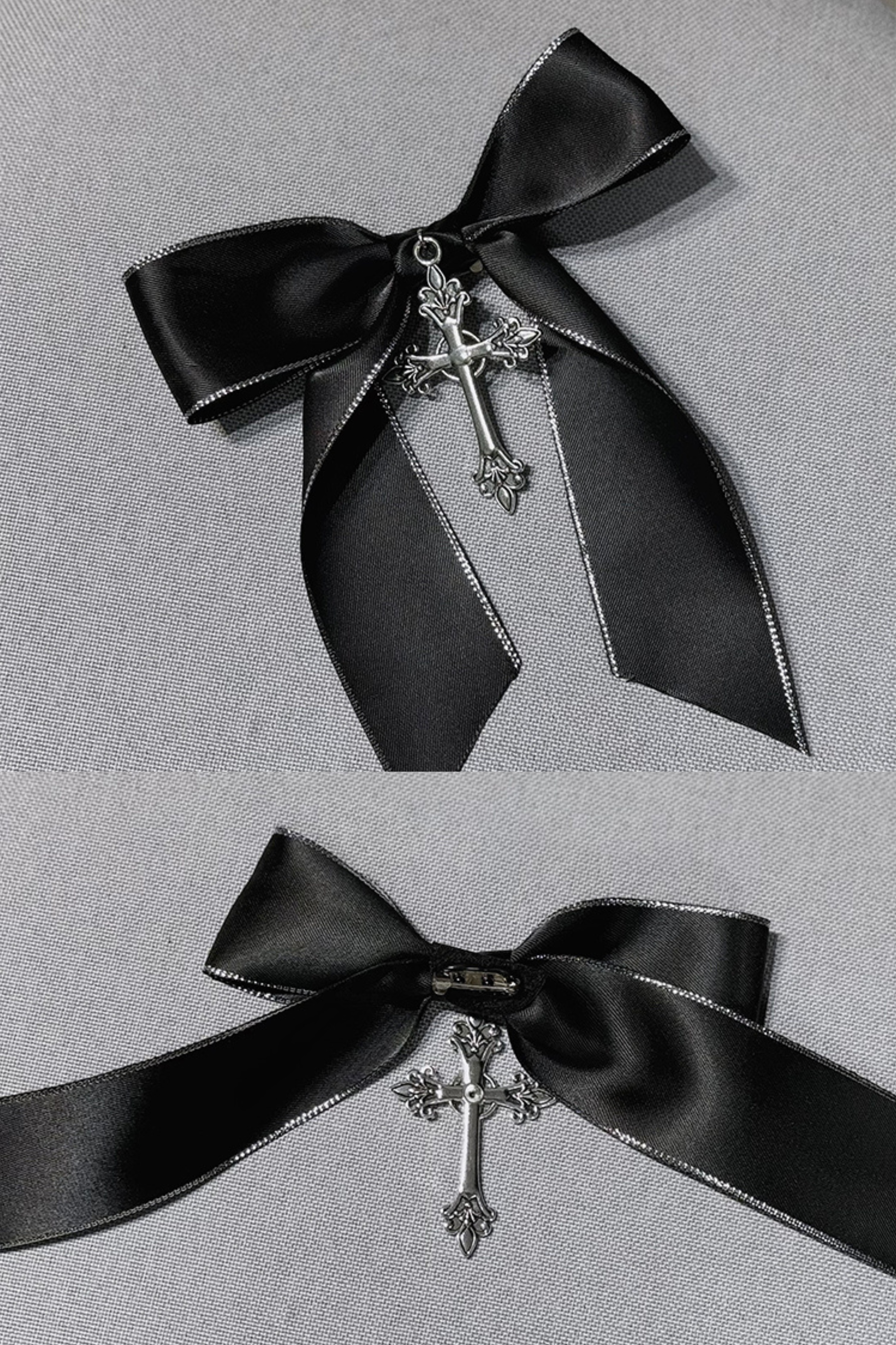 シャツとドレスにはクロスチャームのリボンアクセサリーが付いています