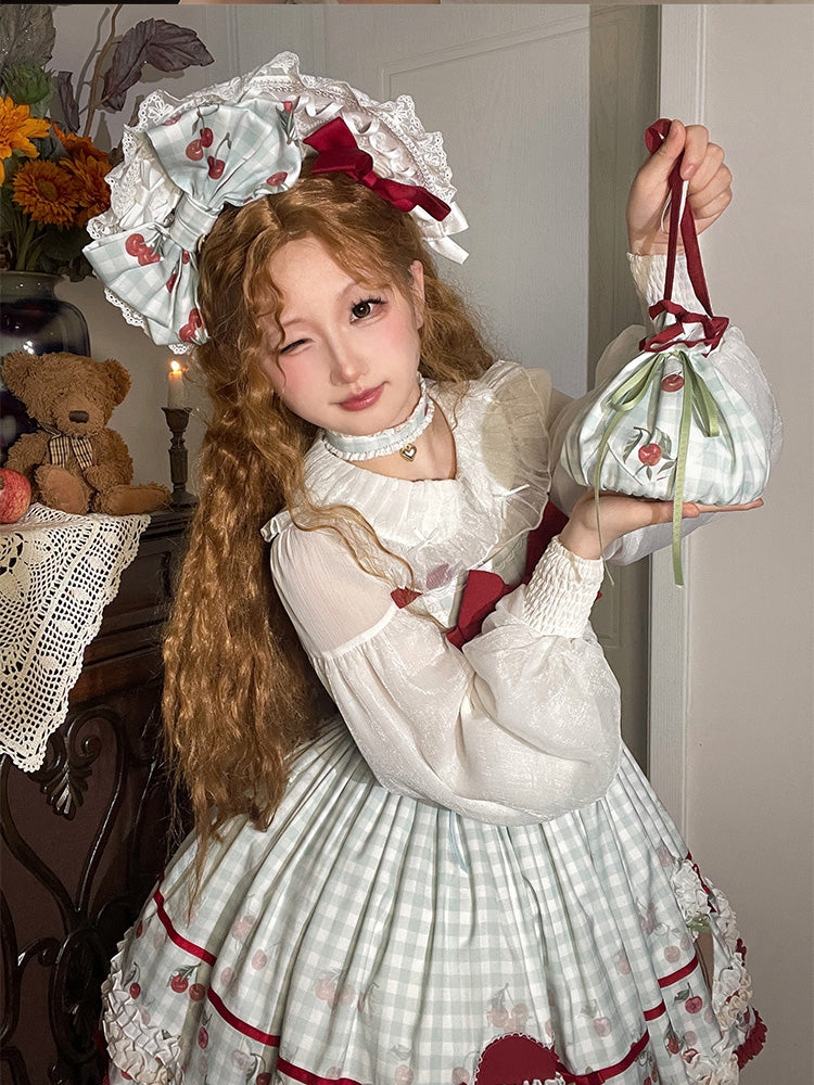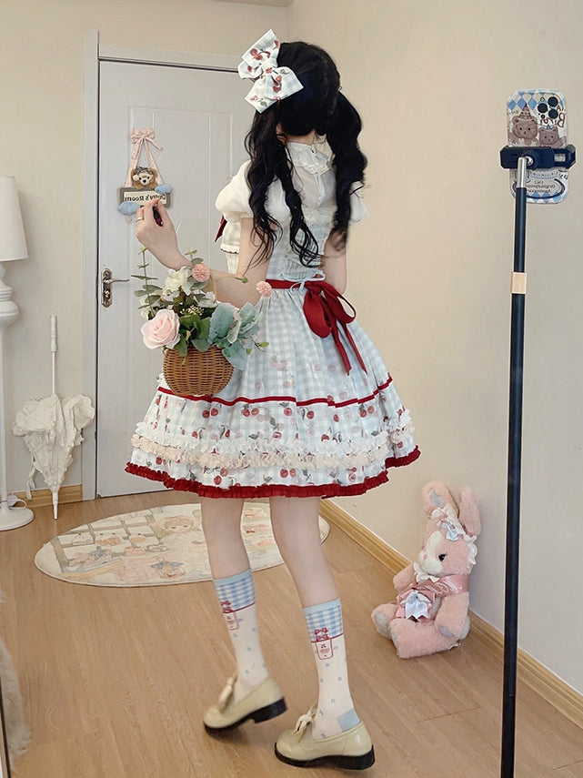 青と白のオールドスクールロリータファッションドレス 蝶結びディテール JSK セット