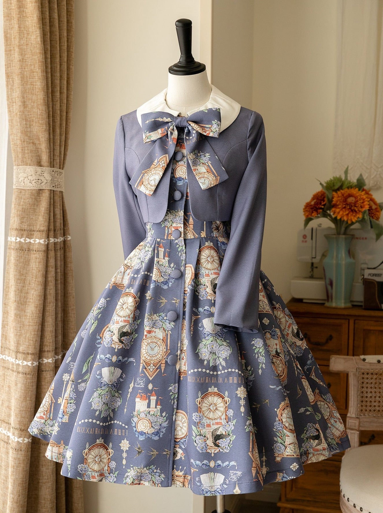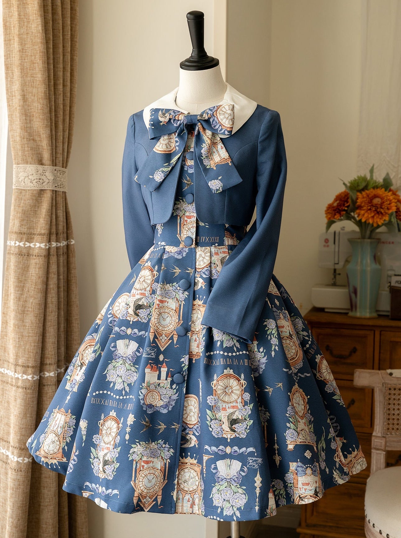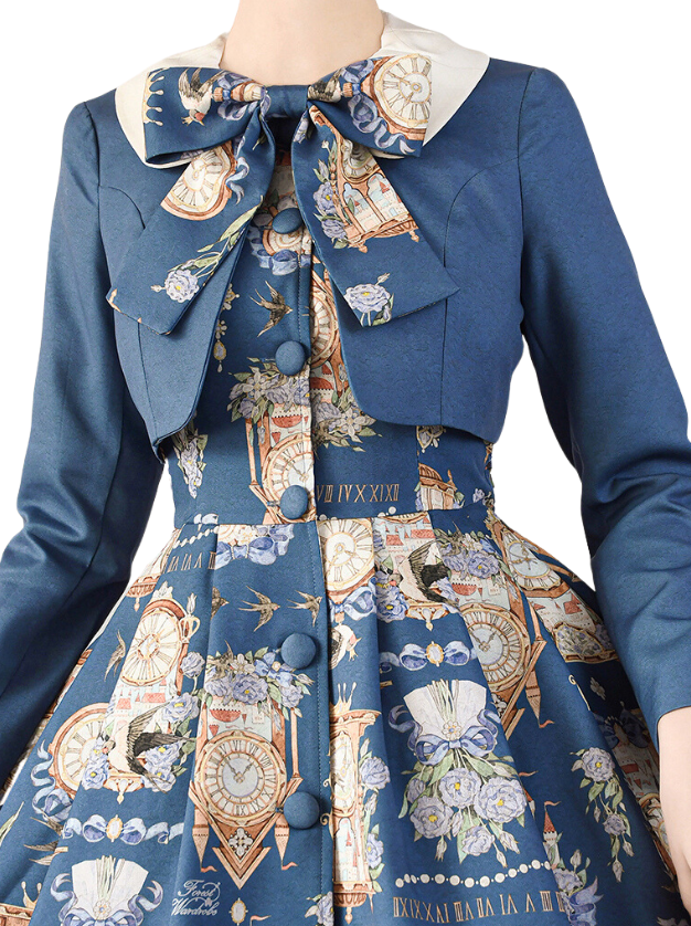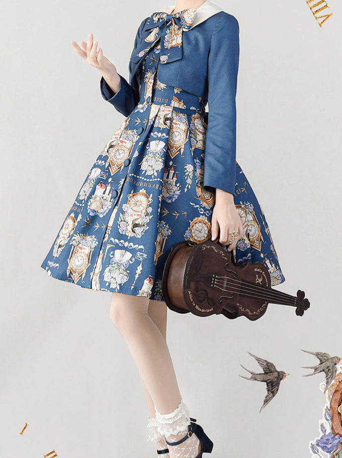 青と白のオールドスクールロリータファッションドレス 蝶結びディテール JSK セット
