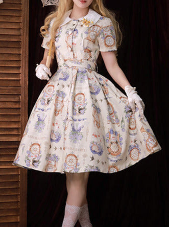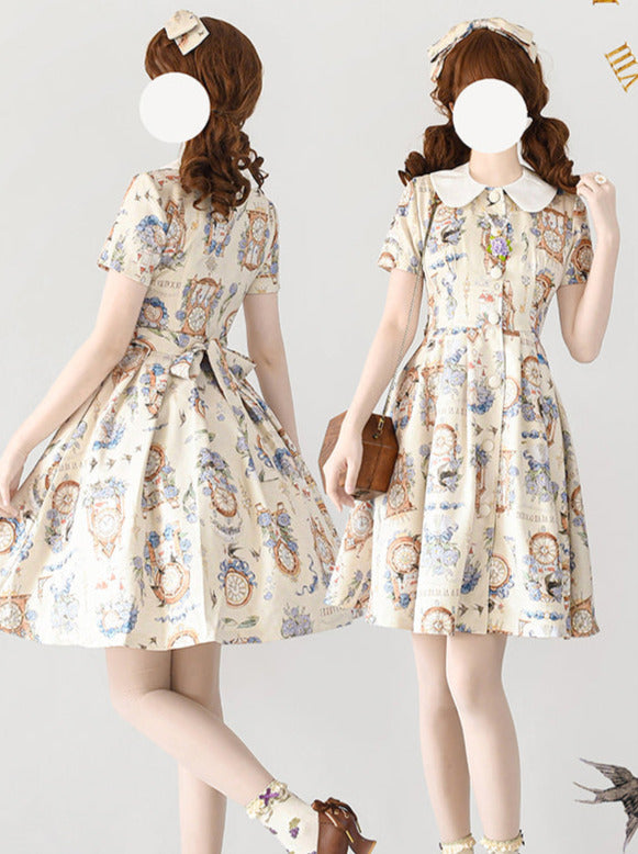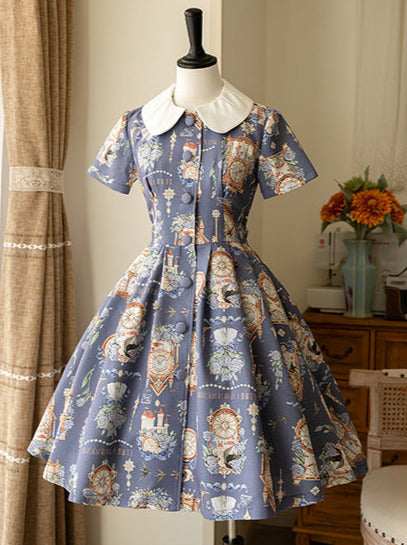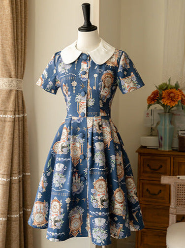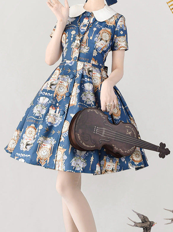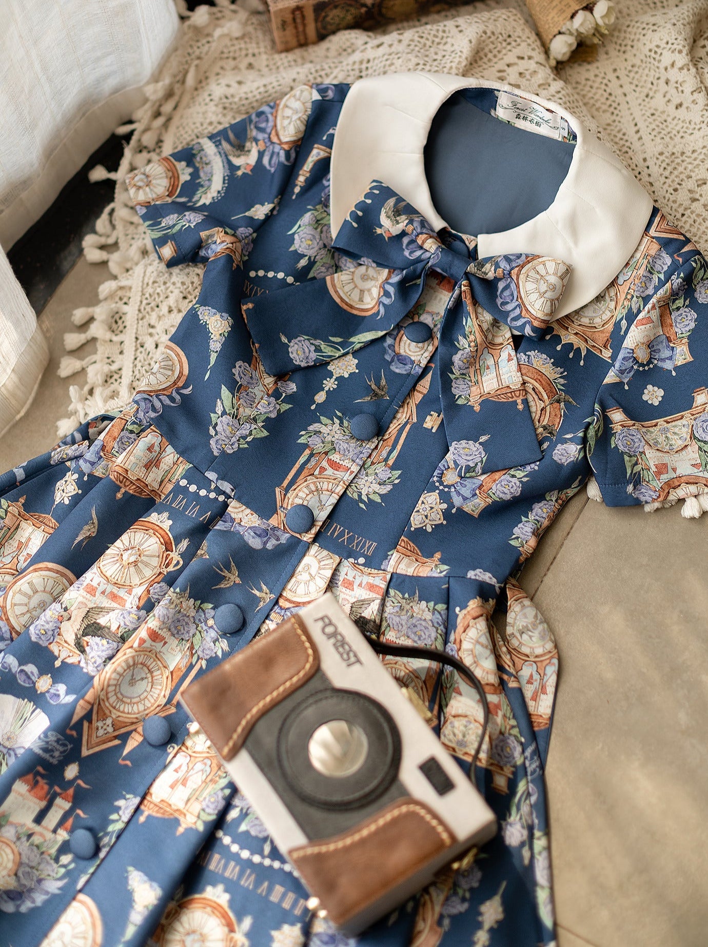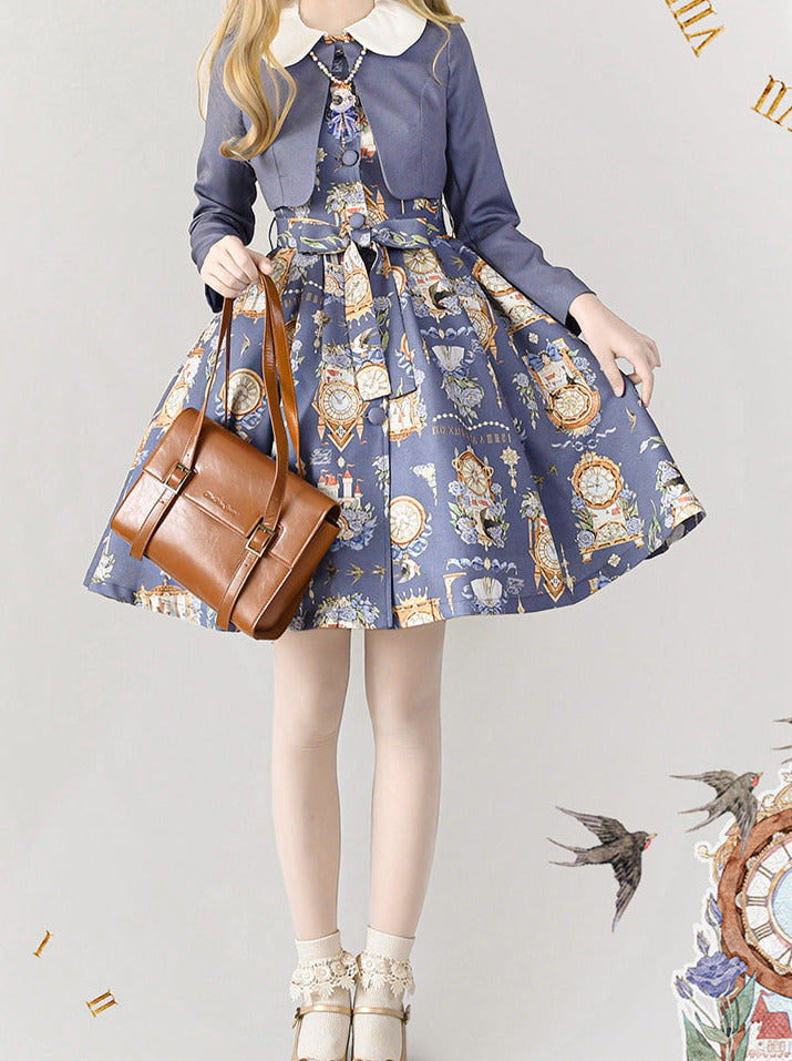 青と白のオールドスクールロリータファッションドレス 蝶結びディテール JSK セット