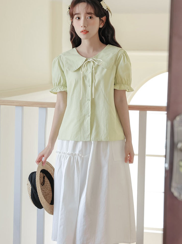 パフスリーブスカートフレアサマーシャツで、夏のスタイルを手軽に格上げ。レトロなミディアムフィットが、ワードローブにキュートなノスタルジックな雰囲気を添えます。快適さとスタイルの両方を追求したこのシャツは、どんなシーンにもぴったりです。