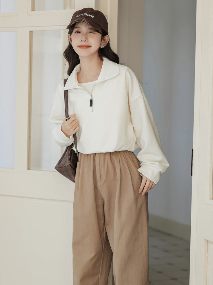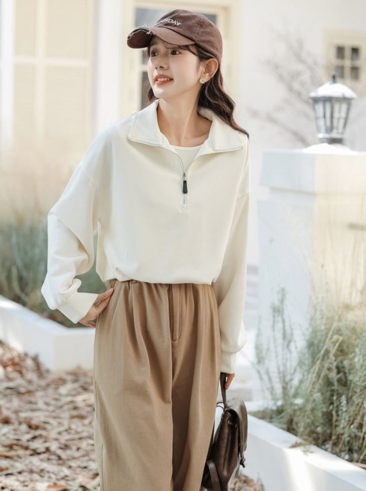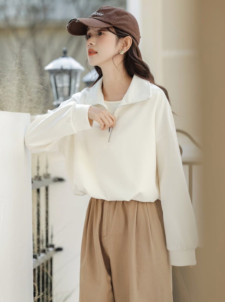 プルオーバー ジッパー スウェットシャツ カレッジスタイル ラペル