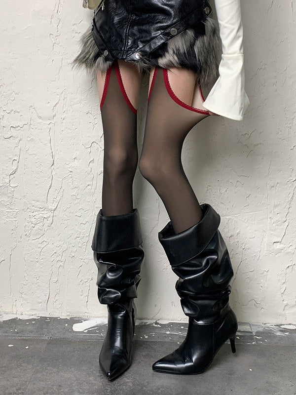 パンクなブラック&レッドのY2Kサスペンダータイツ