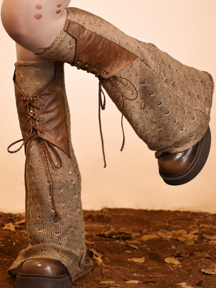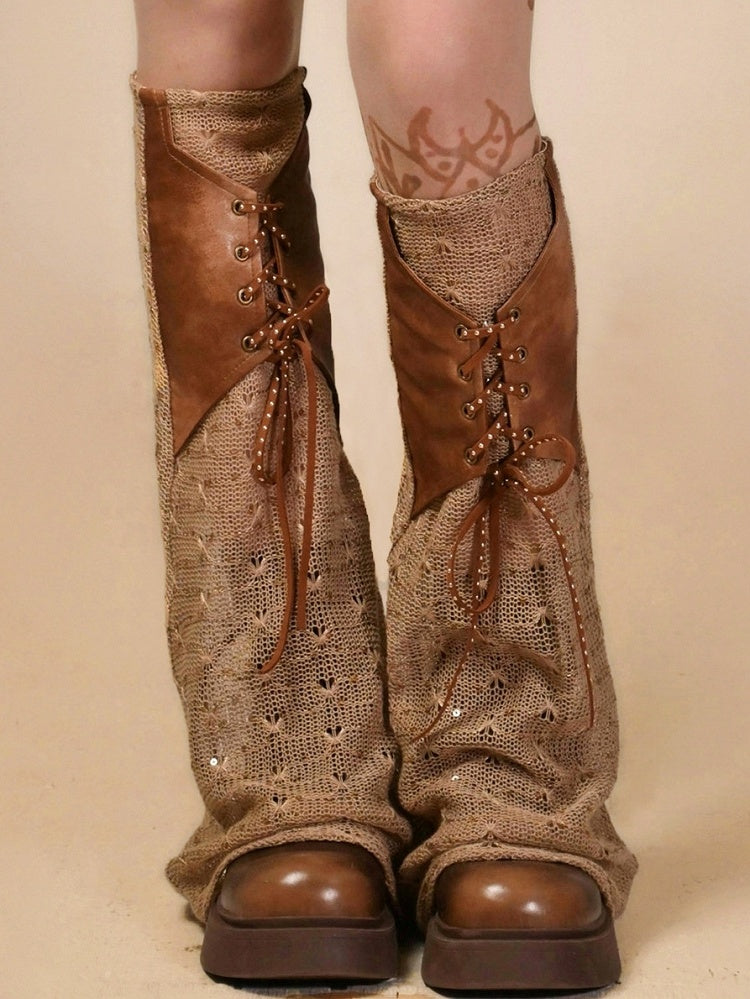 ブラウン ウェイストランド パンク レースアップディテール レッグウォーマー