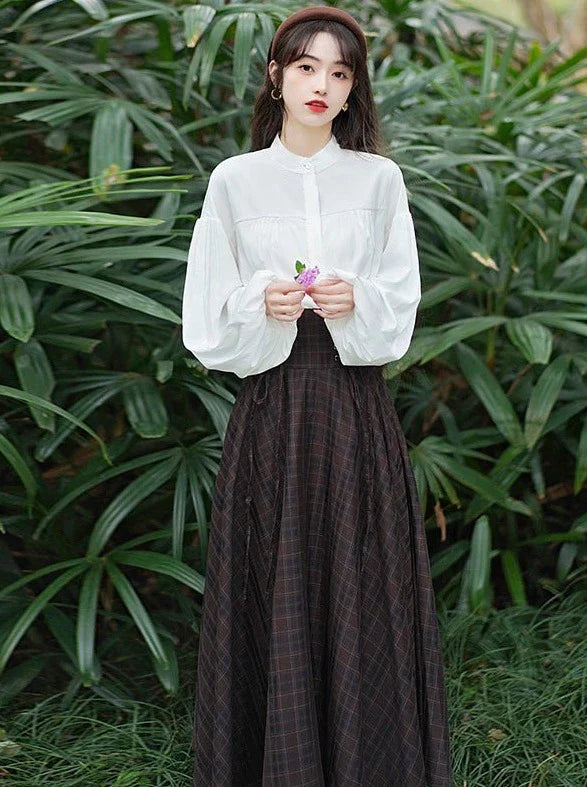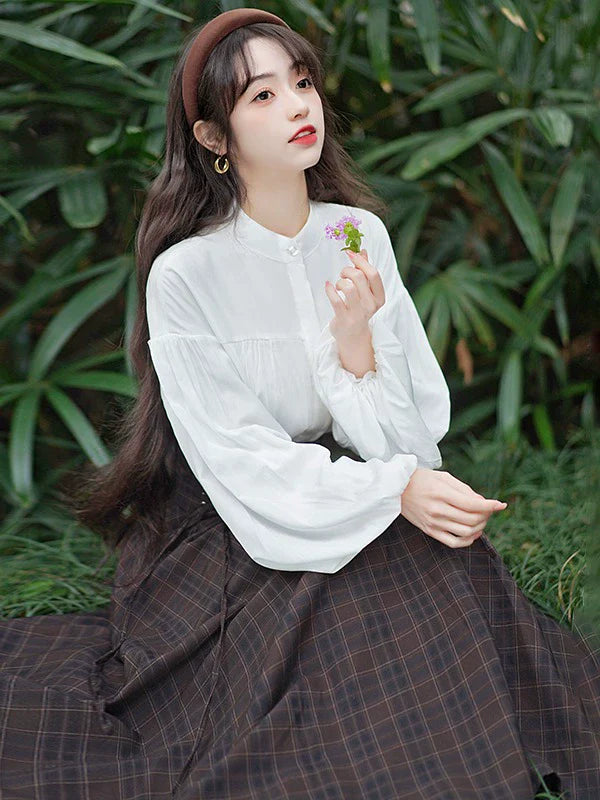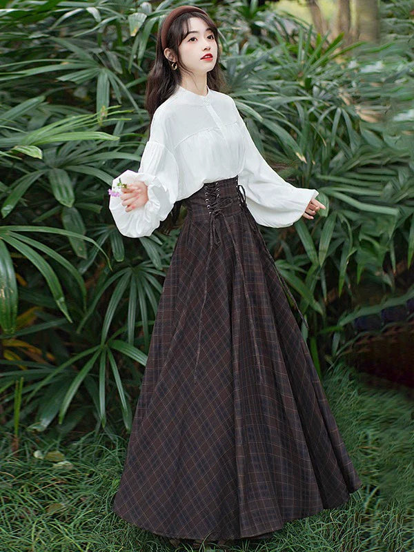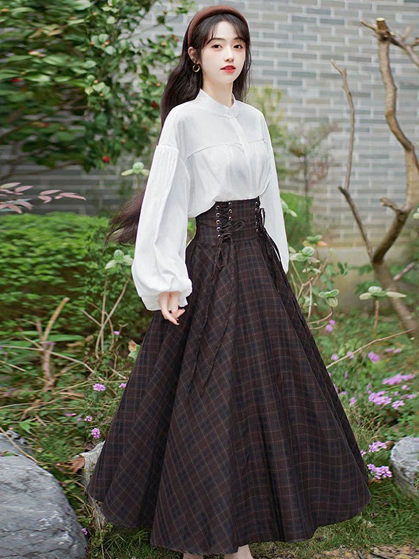 ピュア+スカート ホワイト レースアップ チャックブラウス