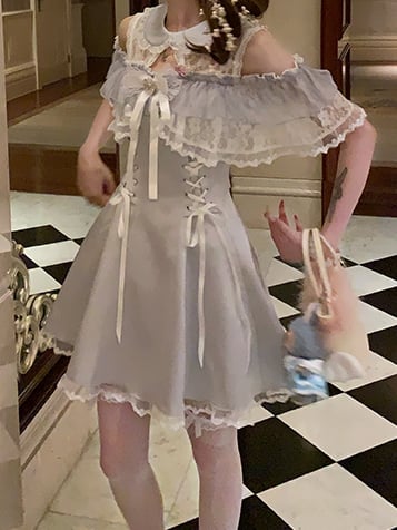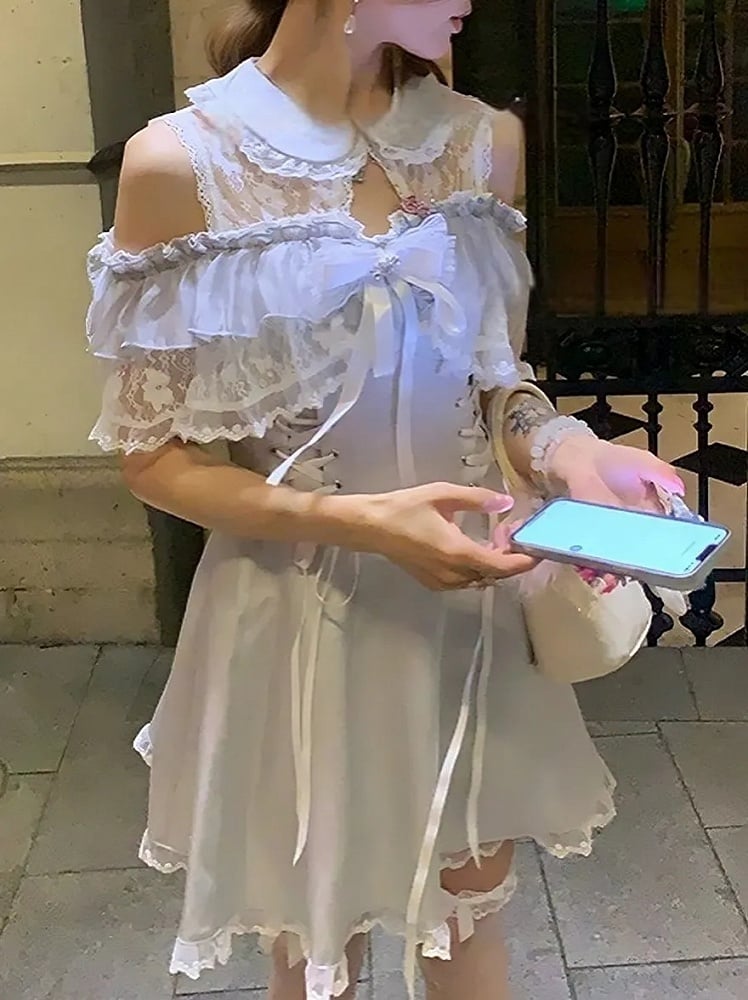 ● Cutout Shoulder / Lace Trim / Lace-up Detail / Ruffle Trim