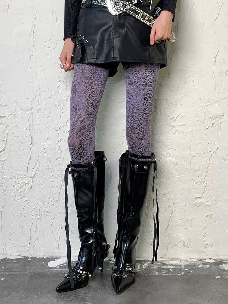 パープルY2Kバタフライアシンメトリーカットアウトタイツ