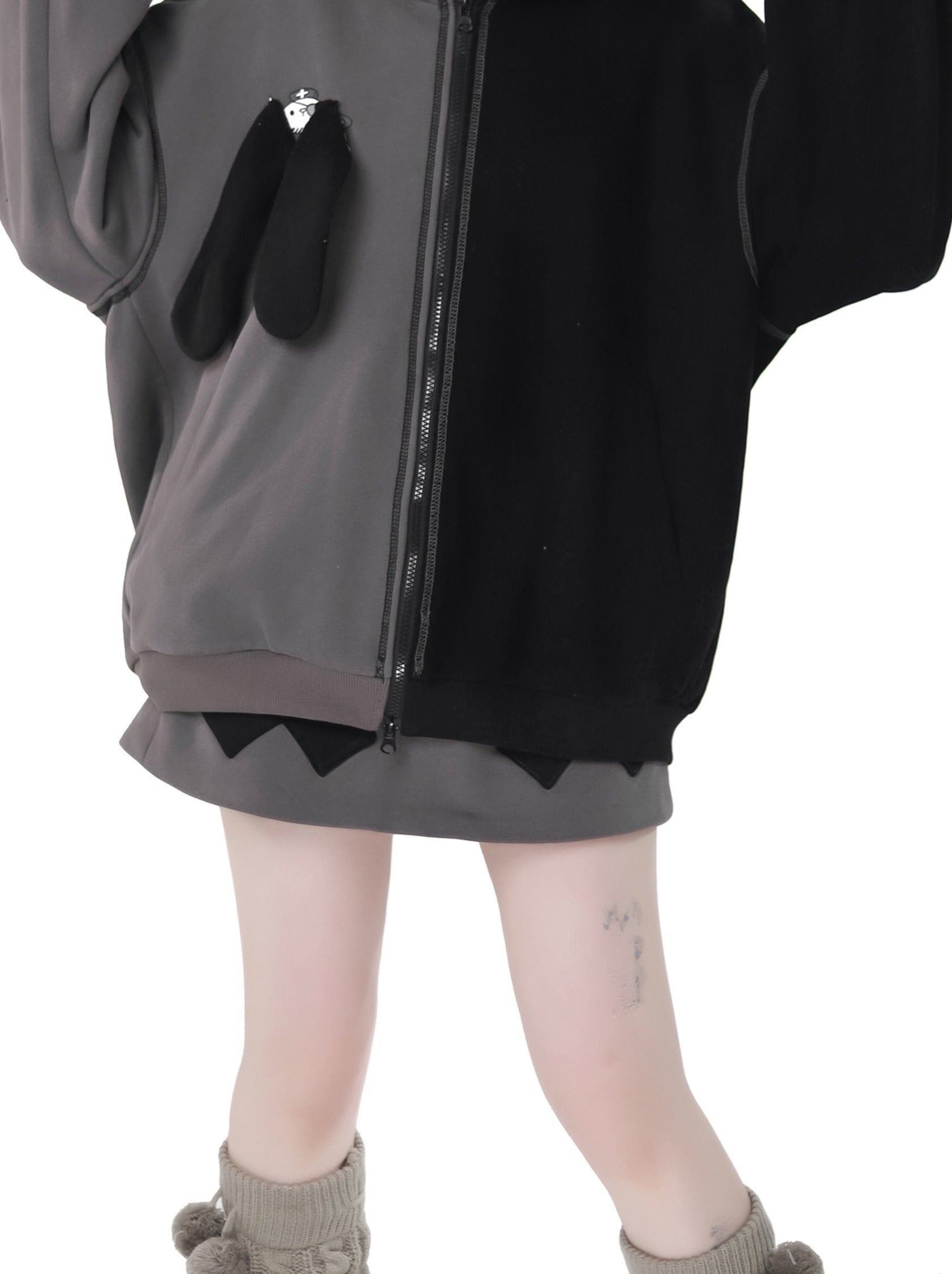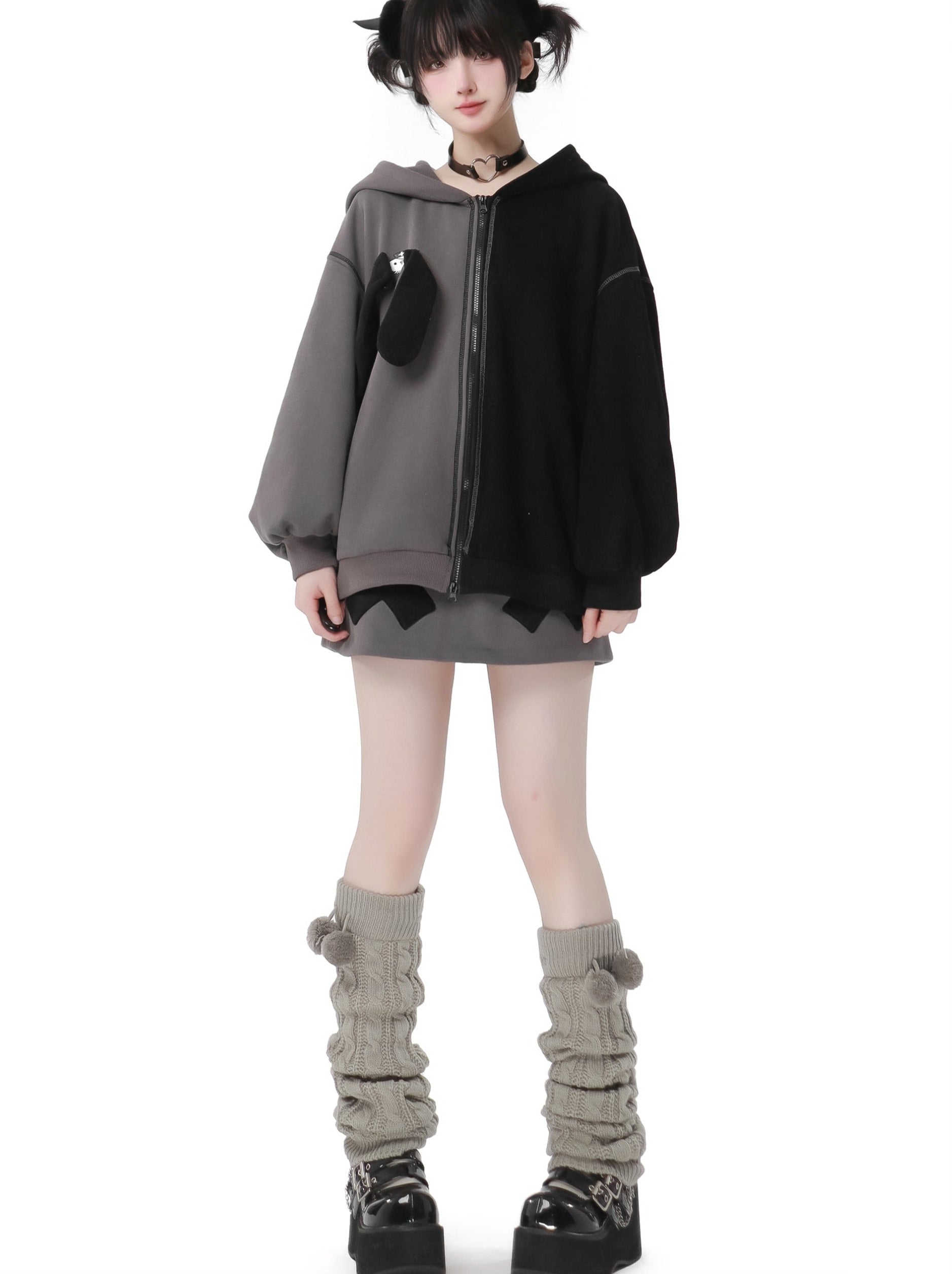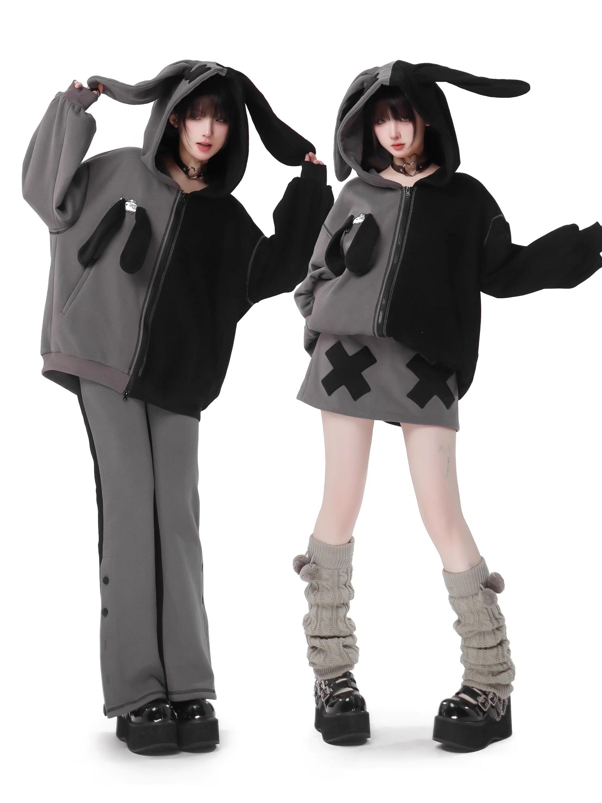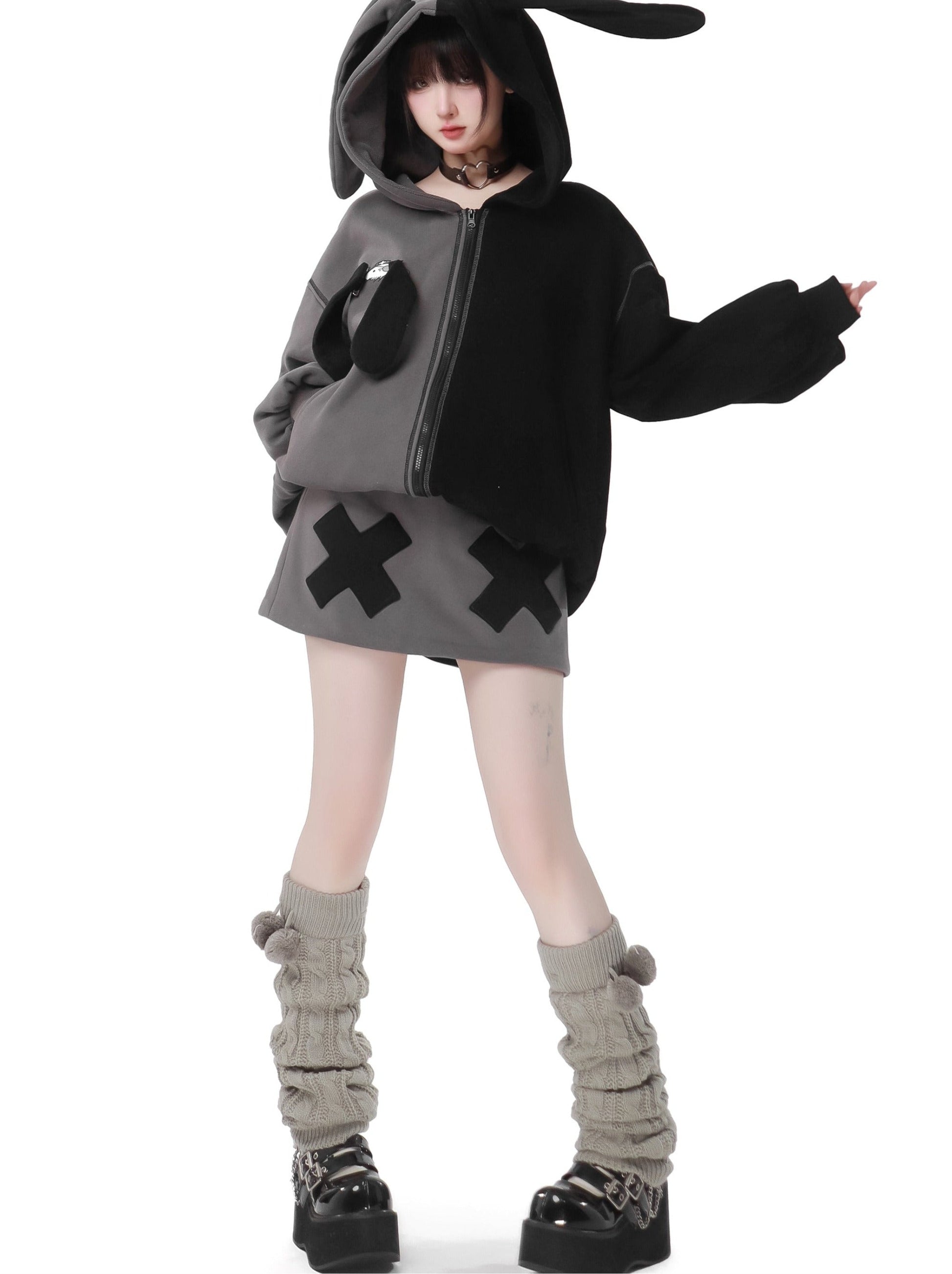 ラビットイヤーコントラストジップパーカーパンツスカート