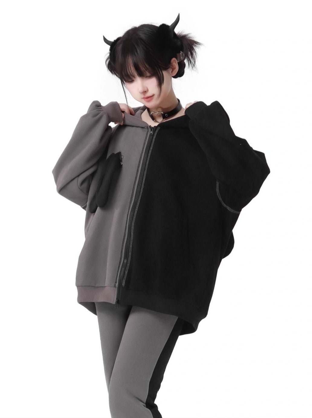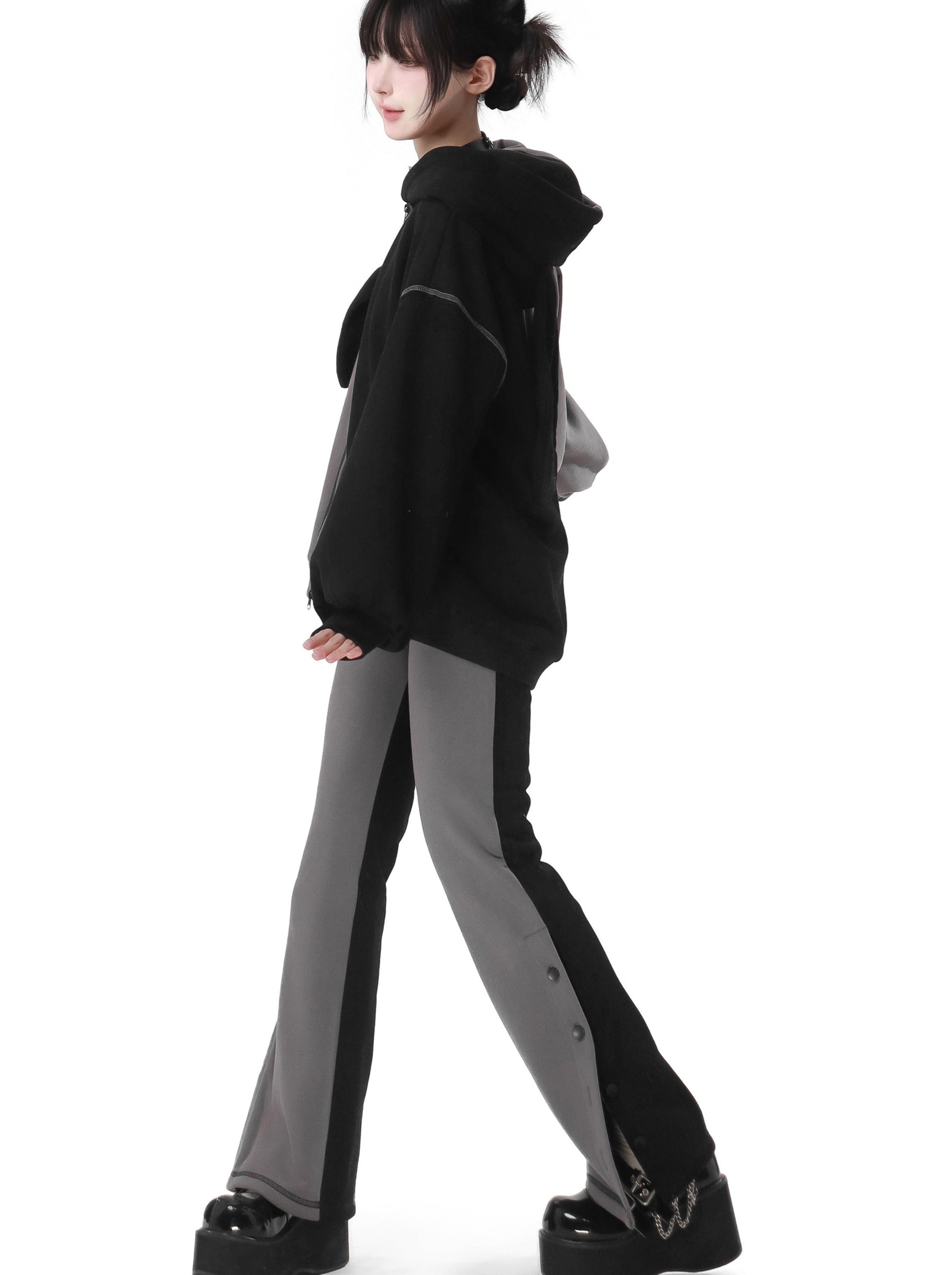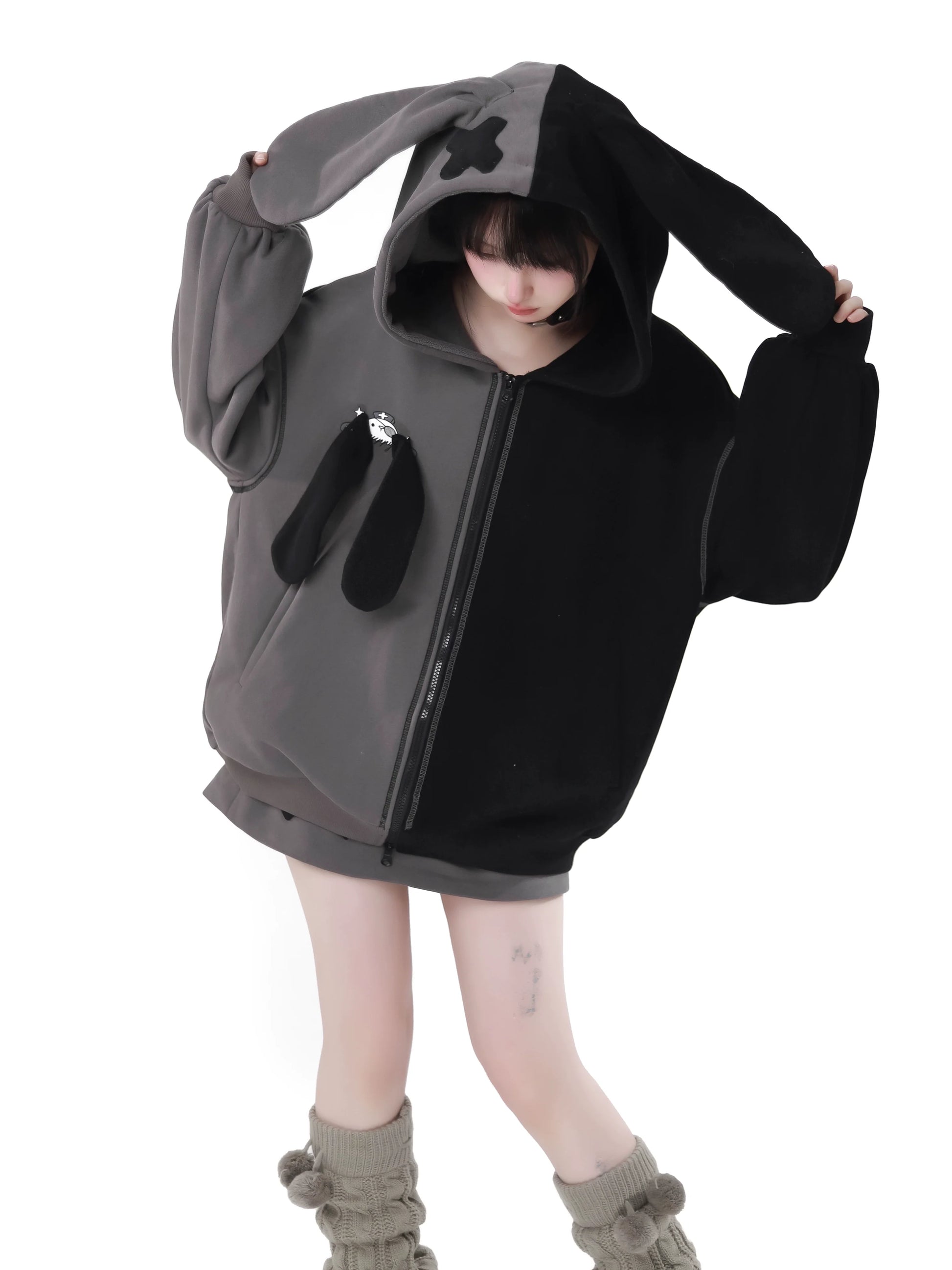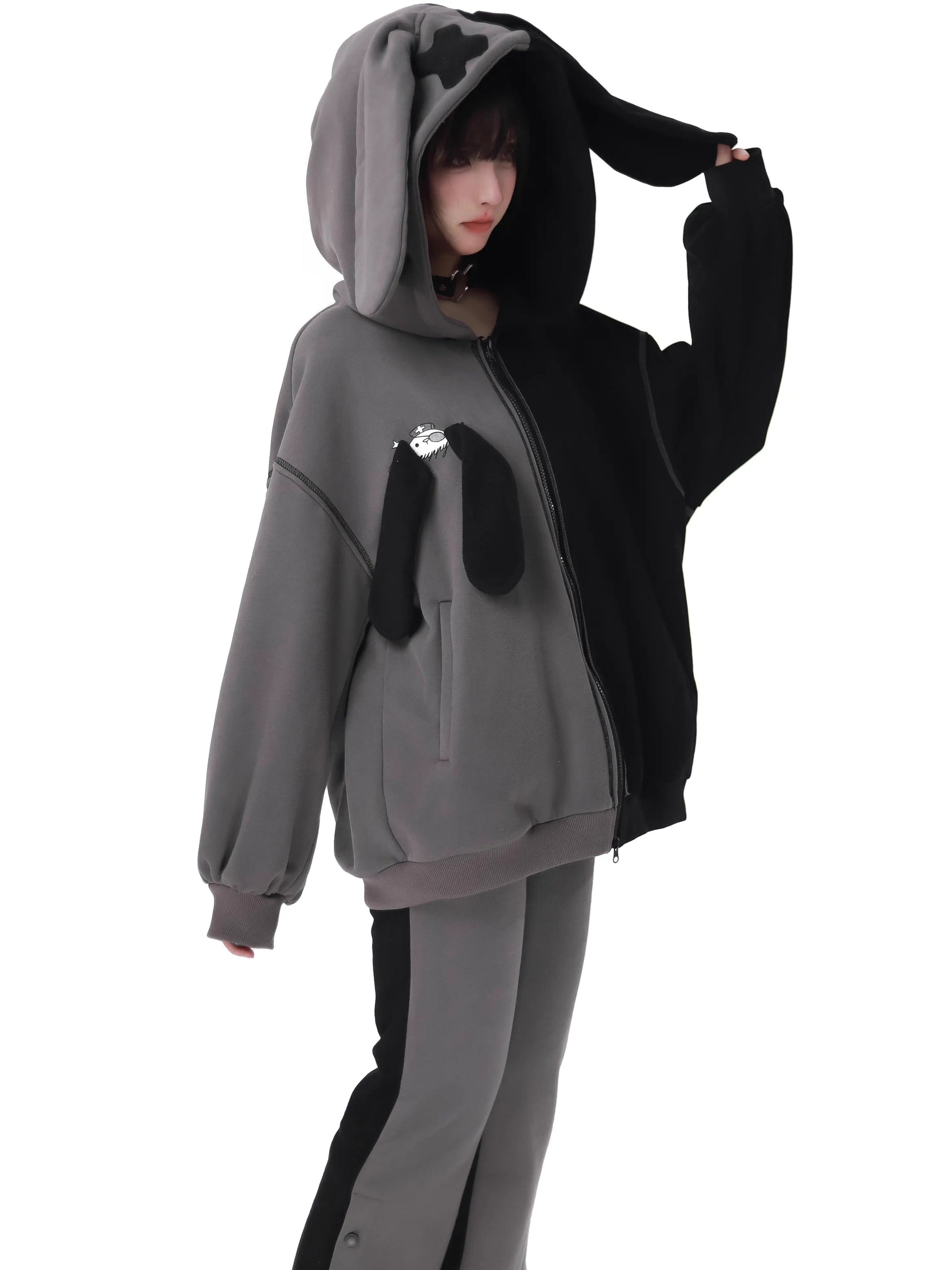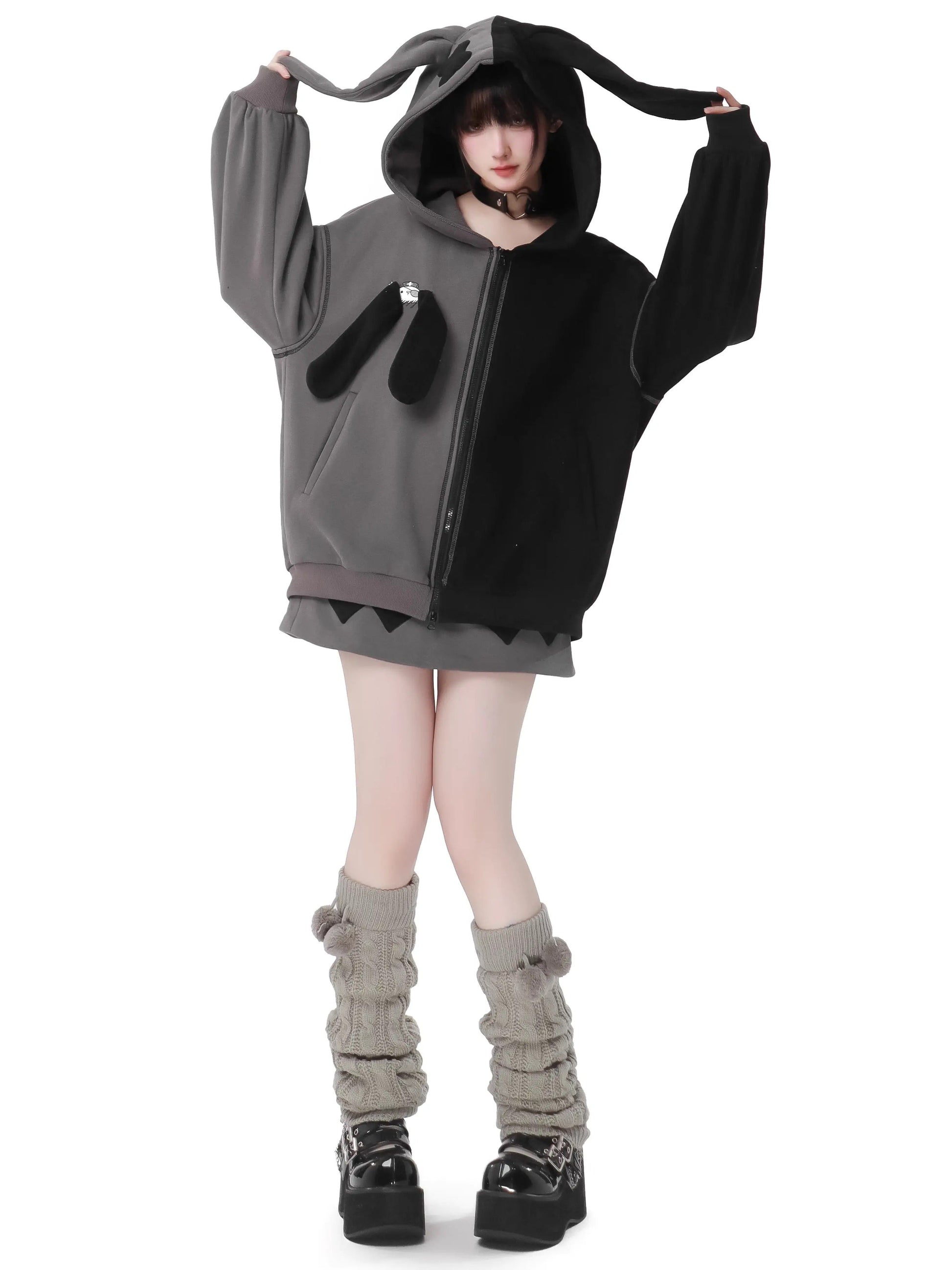 ラビットイヤーコントラストジップパーカーパンツスカート