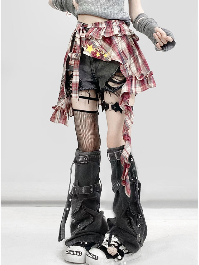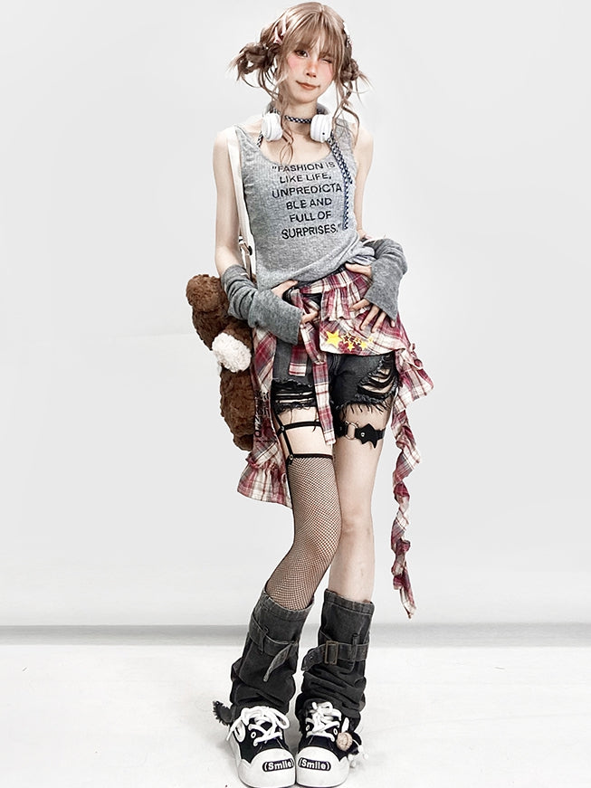 Raw Denim Holes Shorts Bittersweet Distressed Hem Gray