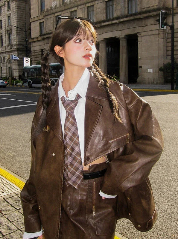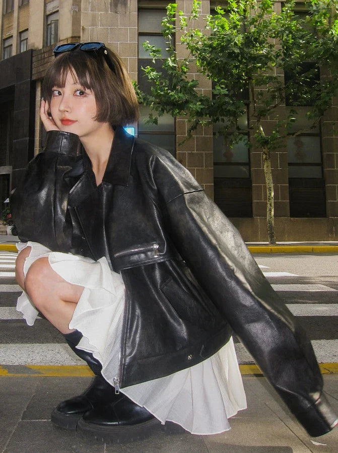 レトロペイントジャケットレザーオイルパターン+レザースカート
