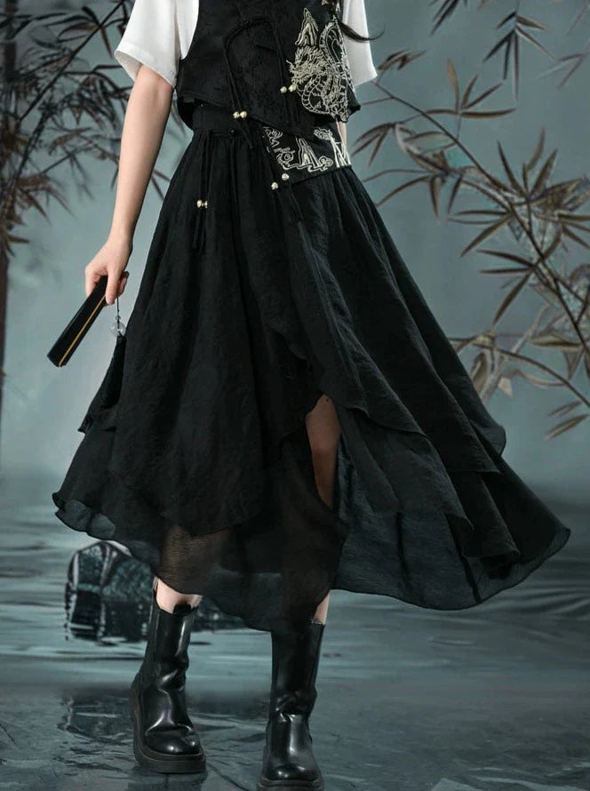 レトロなシャツとアシンメトリーチャイナスカートのベストは、キュートでスタイリッシュなワードローブのアクセントとして活躍します。上質な素材を使用し、ユニークなデザインで着心地と汎用性を兼ね備えています。どんなシーンにもぴったりのこの一着は、あなたを際立たせ、自信を与えてくれます。