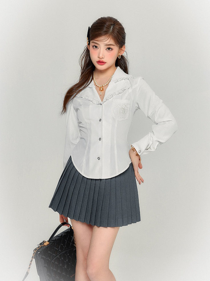 レトロシャツベスト+スリムスカート(カレッジプリーツ)で、チャーミングでキュートなルックを手に入れましょう。スタイリッシュなシャツベストとスリムスカートの組み合わせが、シックでファッショナブルな印象を与えます。どんなシーンにもぴったりのこのセットは、ヴィンテージな魅力で注目を集めること間違いなしです。