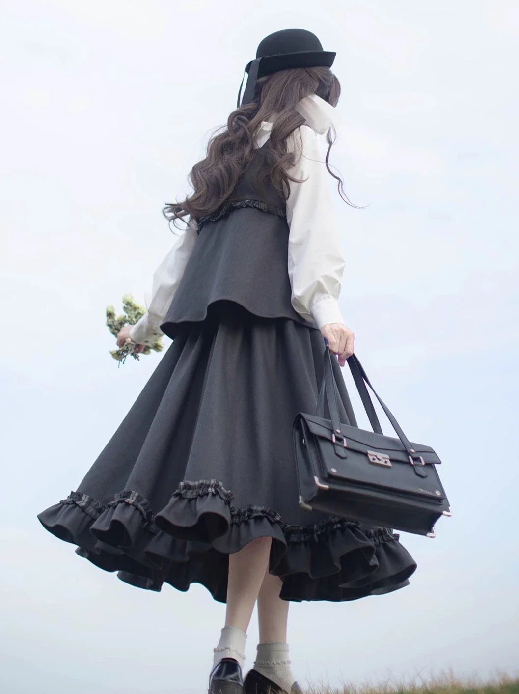 黒と白のオールドスクールロリータファッションドレス蝶結びロリータJSKセット
