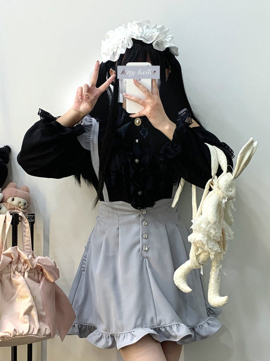 黒と白のオールドスクールロリータファッションドレス蝶結びロリータJSKセット