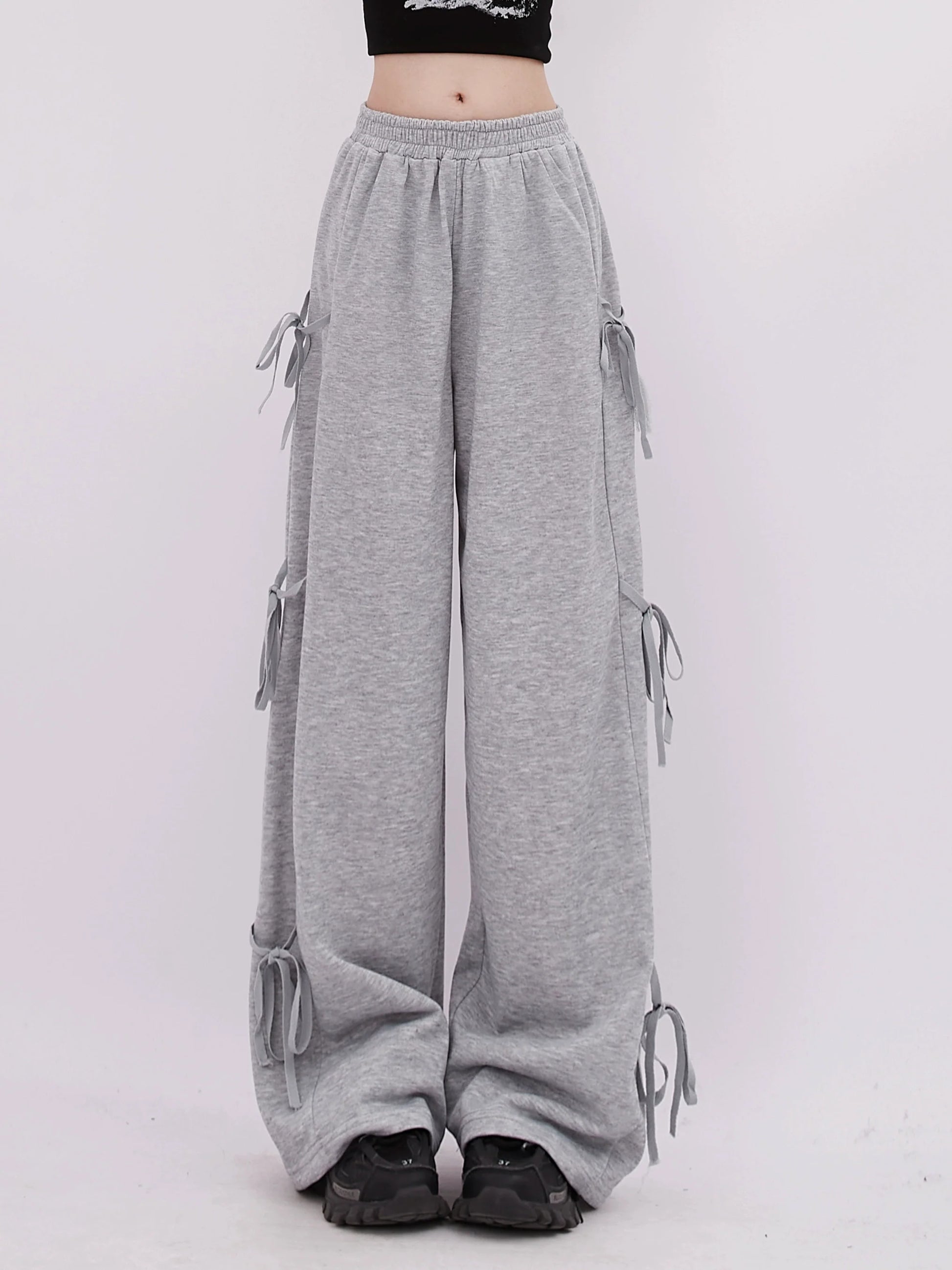 リボンサイドスウェットパンツで、一日中快適でキュートな気分を味わってください!カジュアルウェアとして仕立てられたこのパンツは、サイドにユニークなリボンディテールを施し、スタイリッシュなアクセントを添えています。ゆったりとしたフィット感と柔らかな生地で、くつろぎの時間にも、ちょっとしたお出かけにもぴったりです。