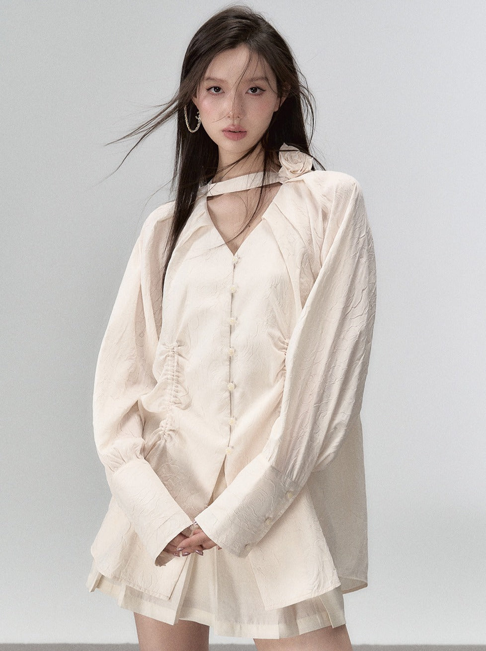 キュートでチャーミングなローズブラウスは、どんなワードローブにもぴったり。上質な素材を使用し、繊細なローズプリントが特徴的なこのブラウスは、スタイリッシュでありながら着心地も抜群です。どんなシーンにもぴったりで、どんな装いにもエレガントな雰囲気を添えてくれます。