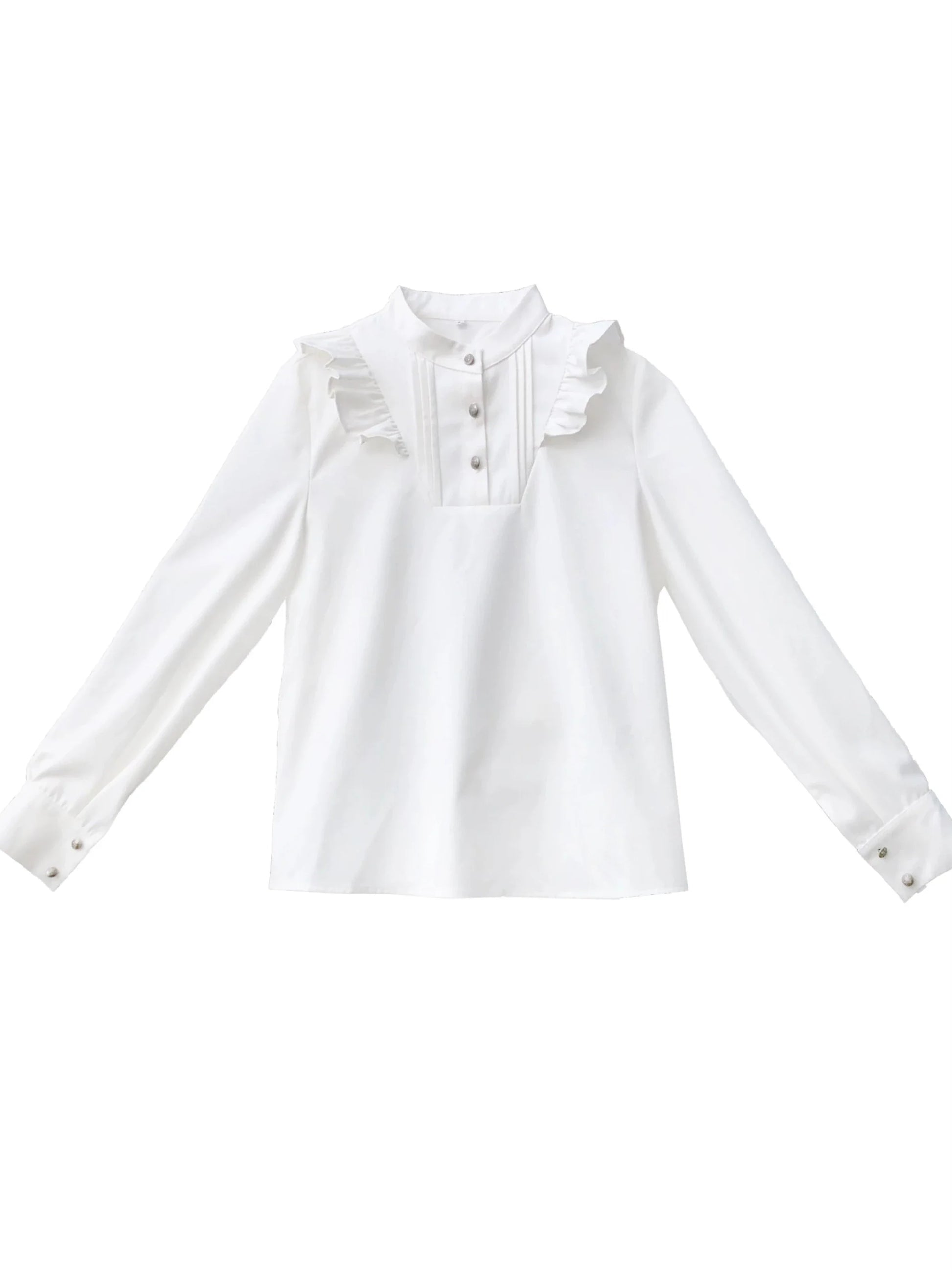 フリル風チェックスカート フリルスーツ+リボン ホワイトカレッジオリジナルシャツ フリル+ベスト