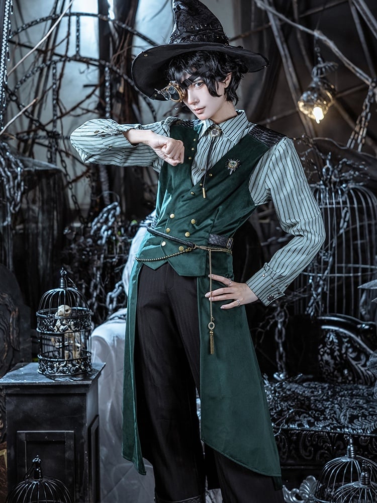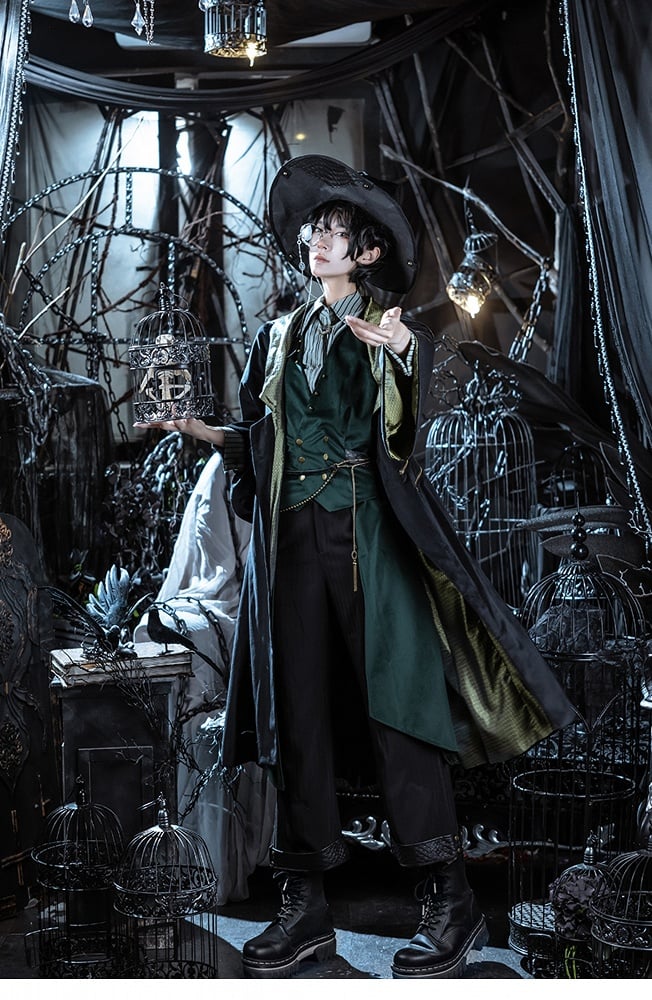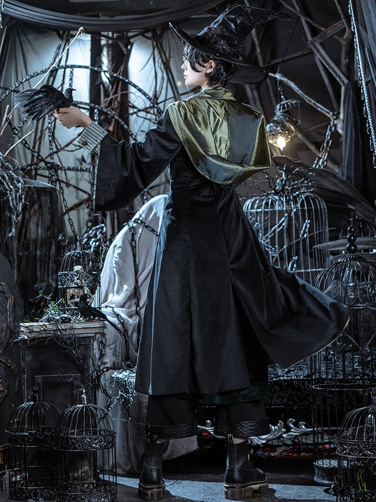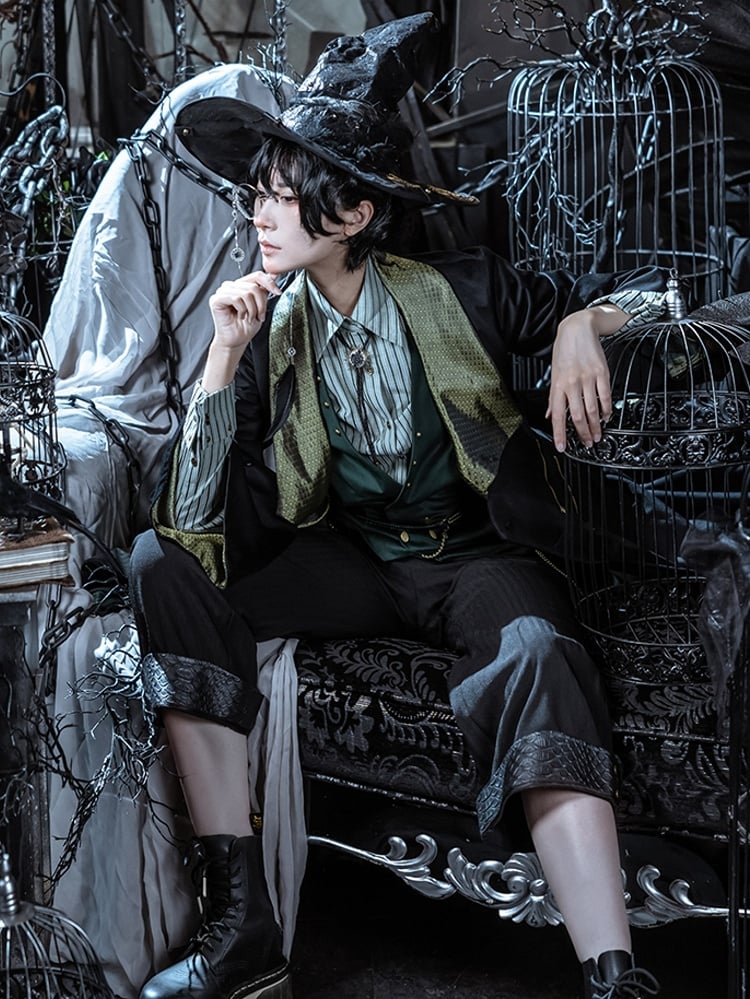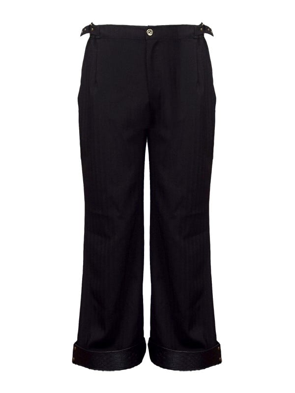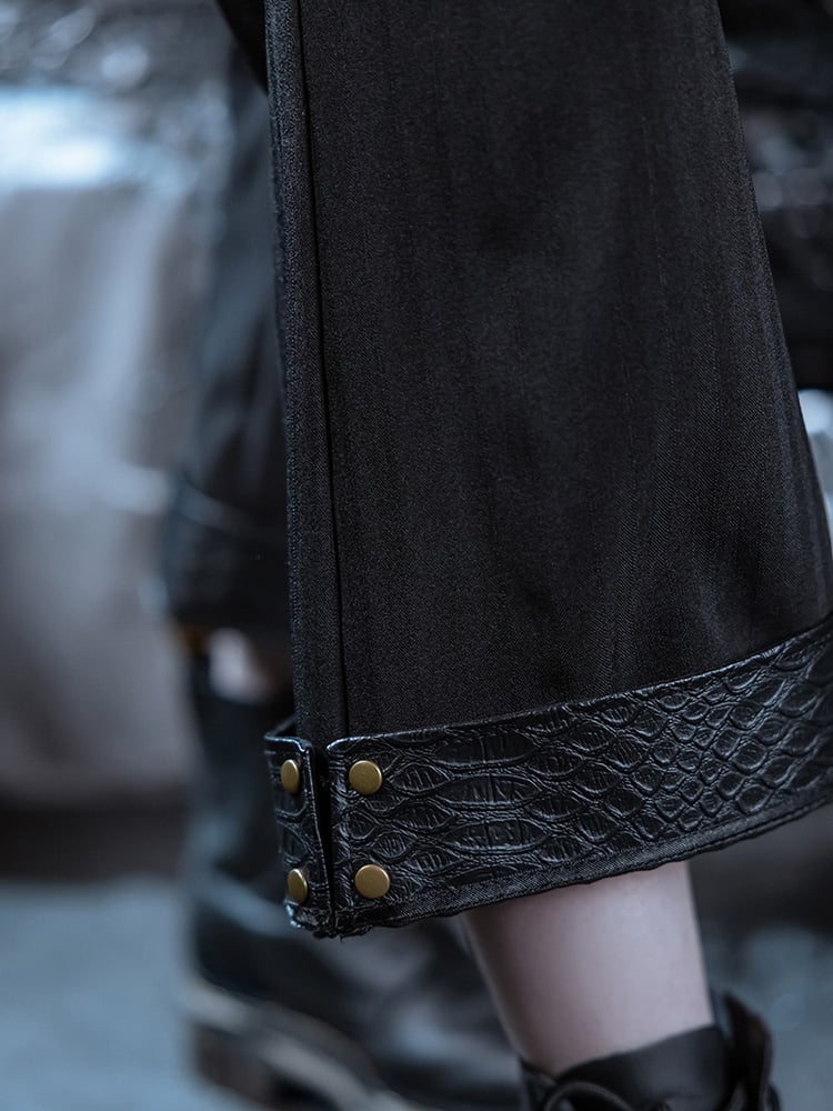 スチームパンク風のブラックパンツ、ブラックスケール柄PUカフス
