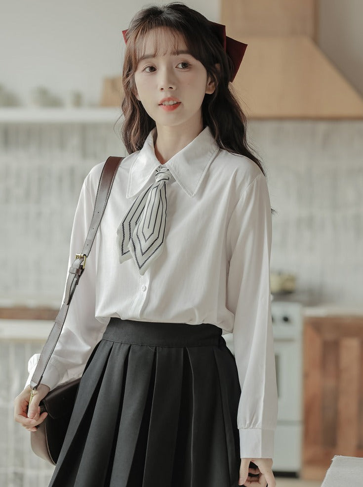 スカーフとラペルのプリーツロングシャツスカートで、キュートな魅力を放ちましょう。プリーツのロングスカートがスタイルにエレガントな雰囲気を添えます。万能なスカーフとラペルが、暖かさとファッション性を同時に叶えます。