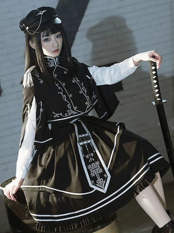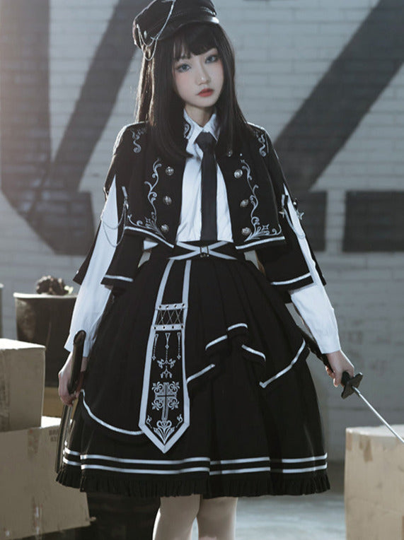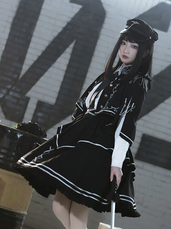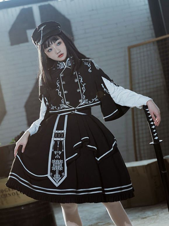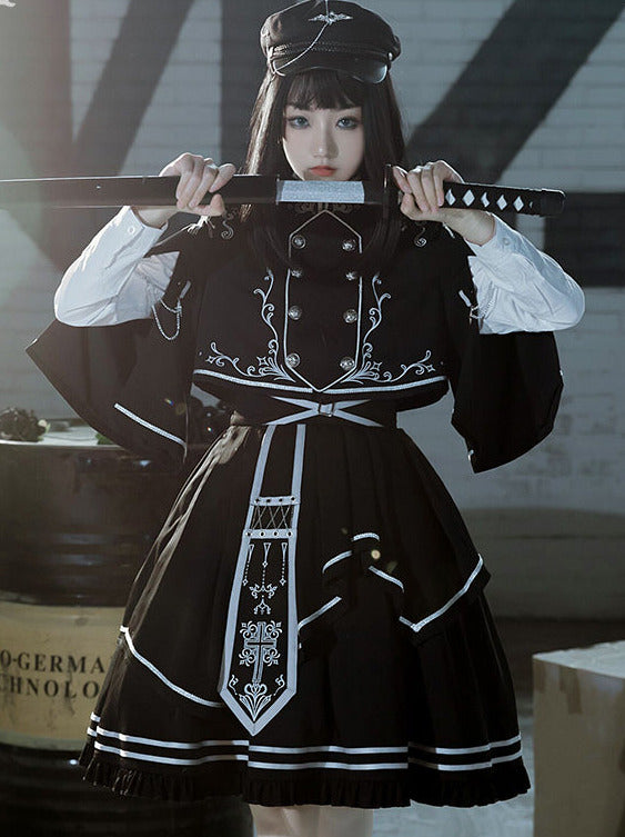 アーミーアップロースカートブルンブルケープダークミリタリーバトルジャケットユニフォームセット