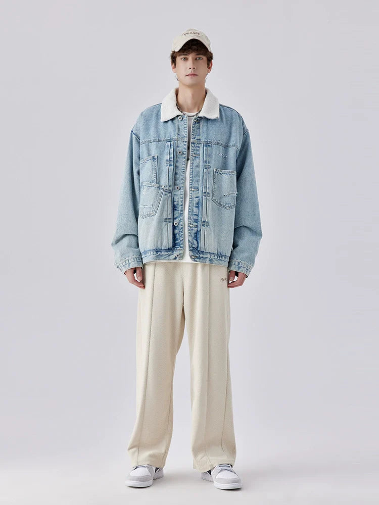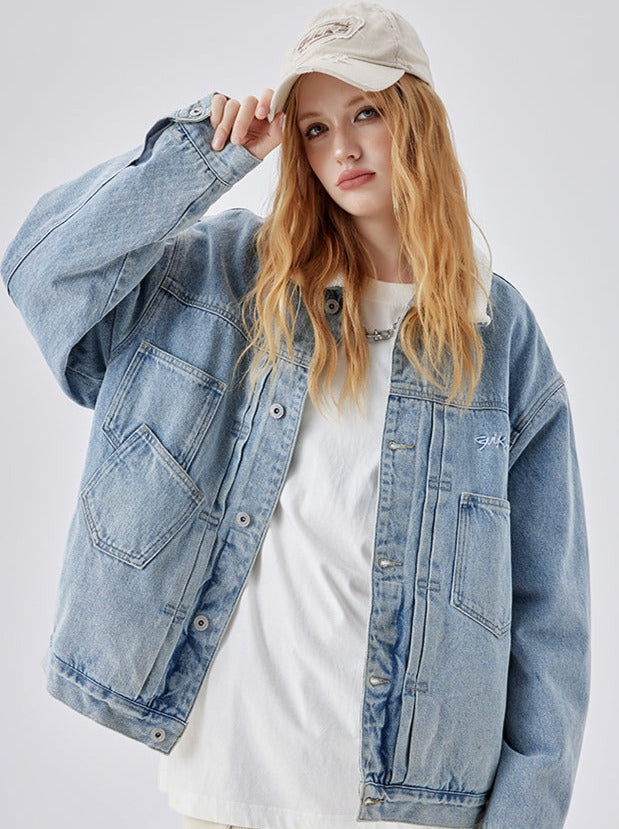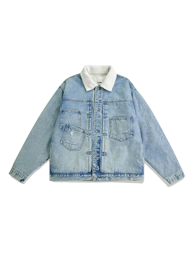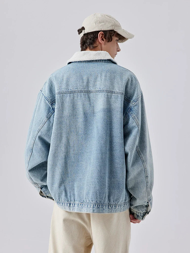 シェルパジャケット デニム ブルーライトで、暖かくキュートな装いを。柔らかなシェルパ裏地とスタイリッシュなデニムルックが特徴のこのジャケットは、暖かさを保ちながら、コーディネートに可愛らしさをプラス。肌寒い日や普段使いにぴったりです。