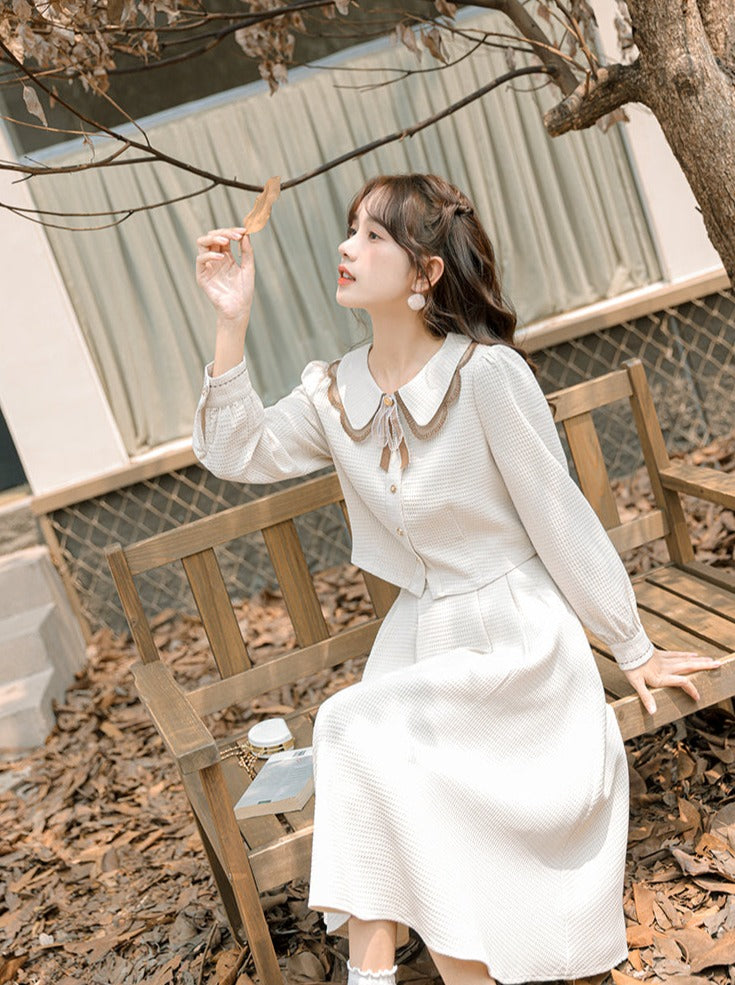 青と白のオールドスクールロリータファッションドレス 蝶結びディテール JSK セット