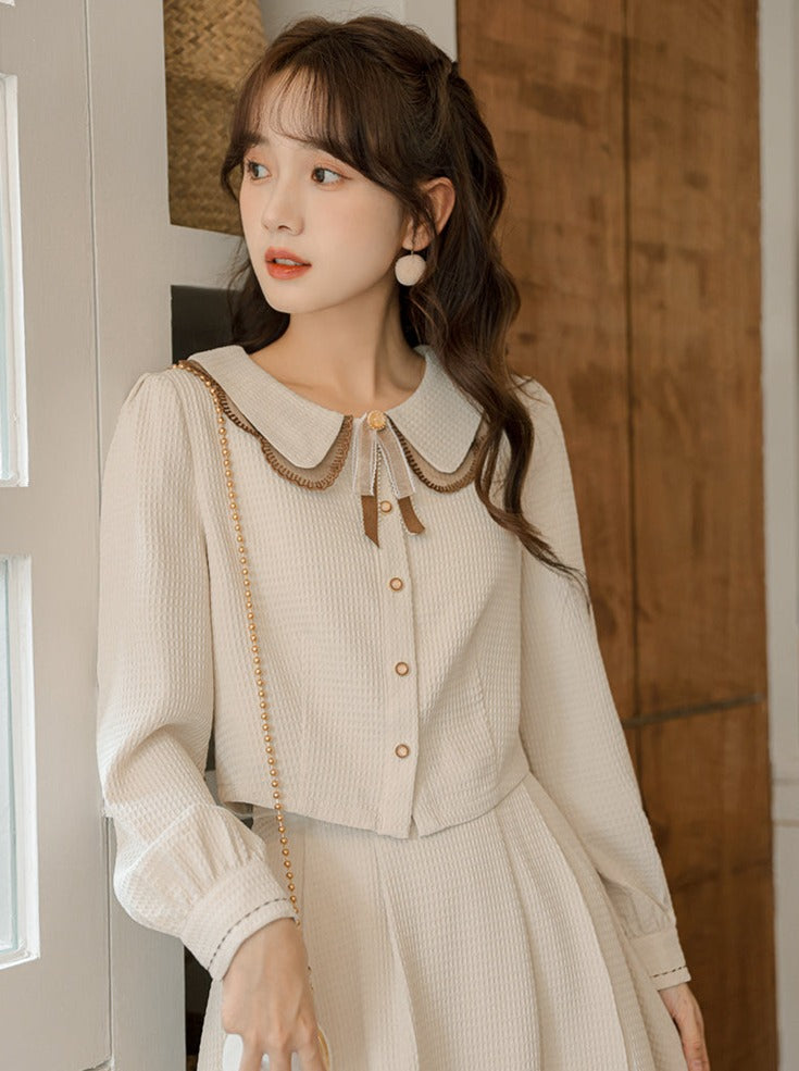 シャツ フレアスカート ショート丈 レトロ ガーリー