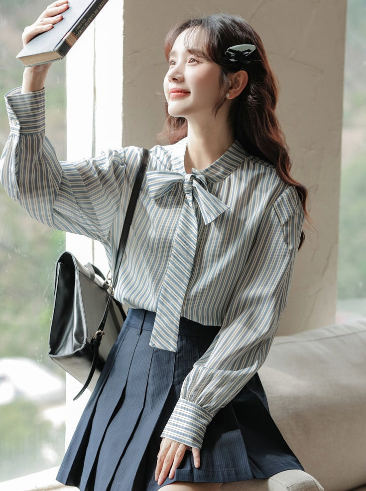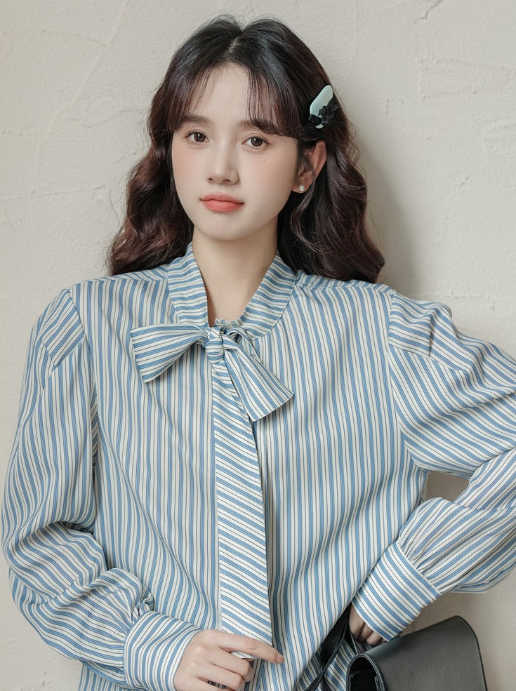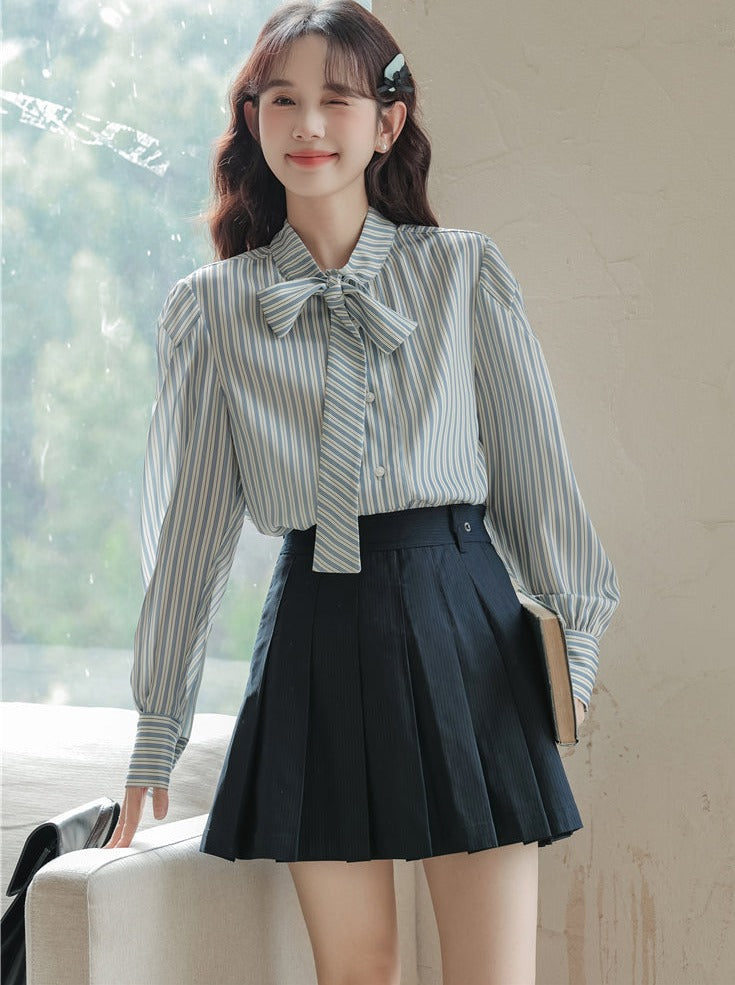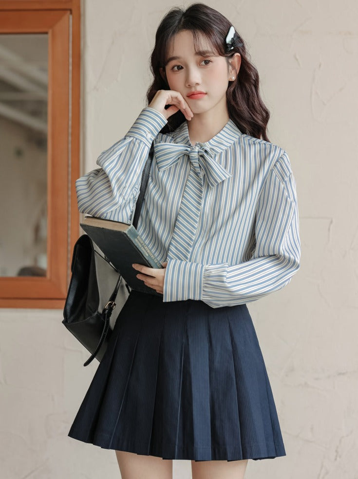 青と白のオールドスクールロリータファッションドレス 蝶結びディテール JSK セット