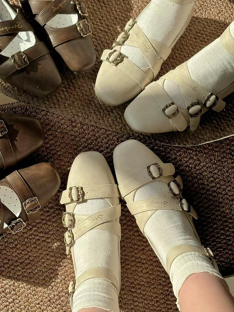 Shoes - Toe Crisscross Elegant Classic Design Square PU Beige Lolita