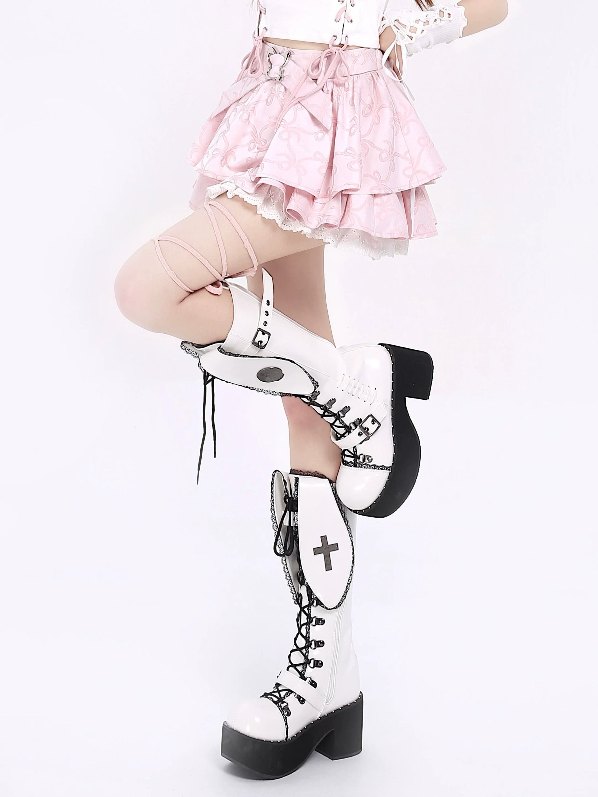 ホワイトとピンクのロリータボンネットチョーカー