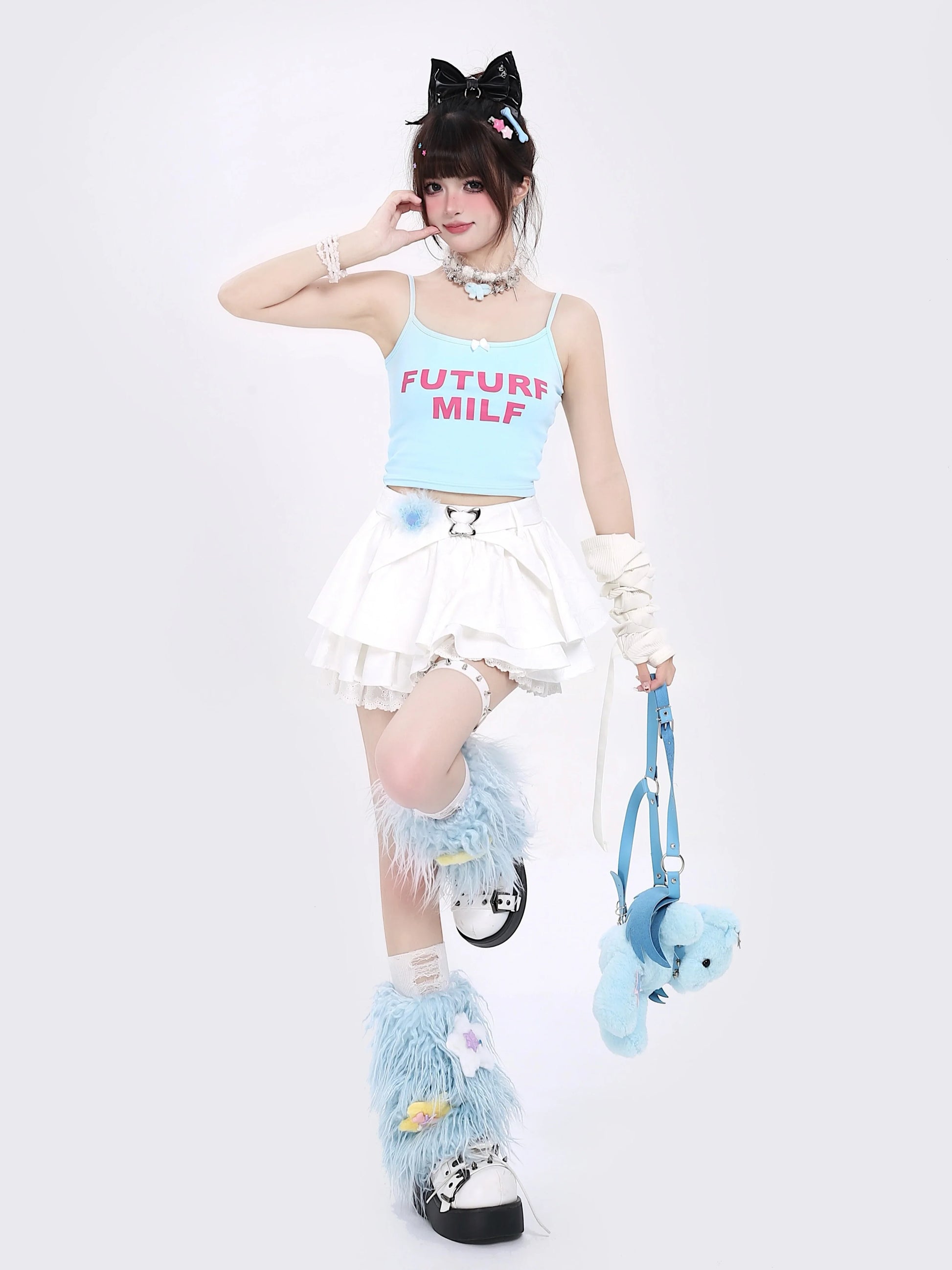 青と白のオールドスクールロリータファッションドレス 蝶結びディテール JSK セット