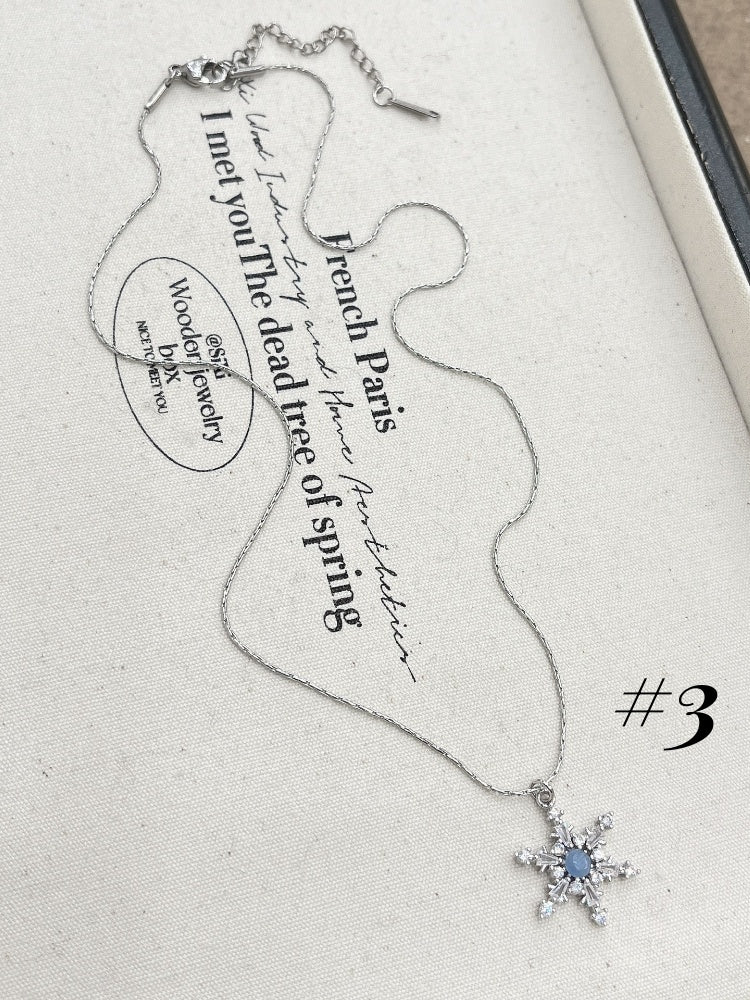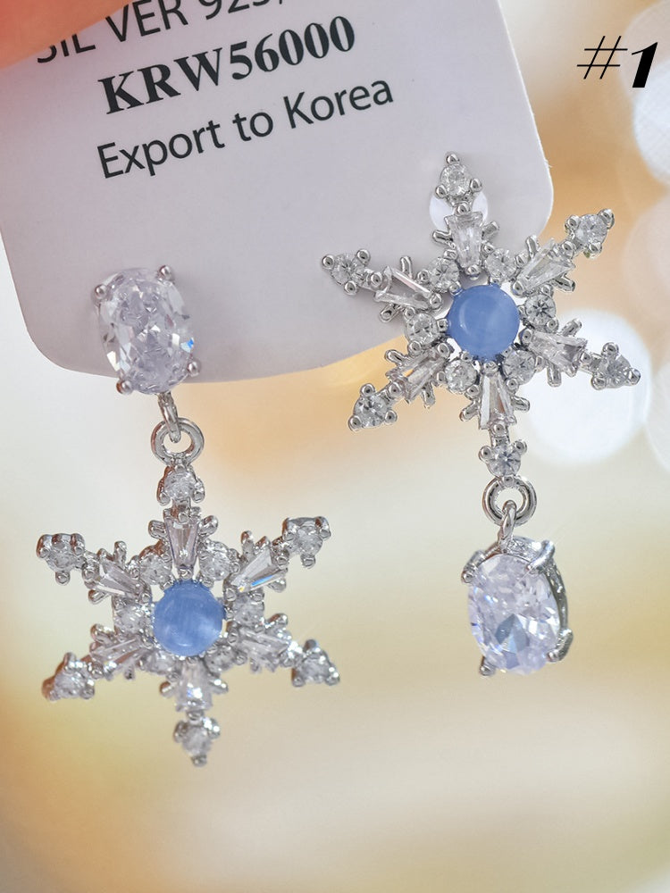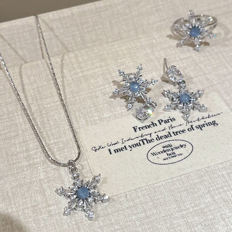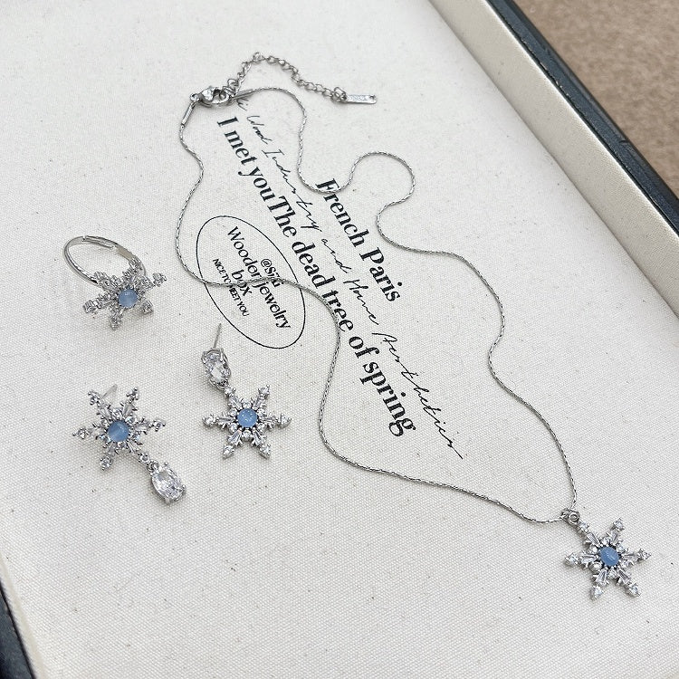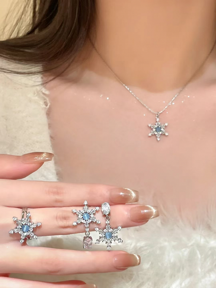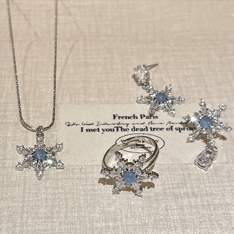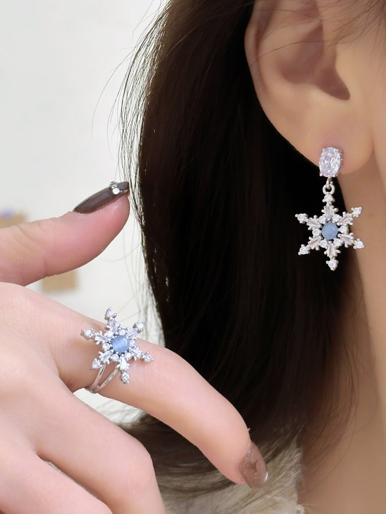 シルバーの雪の結晶型イヤリング/リング/ネックレス