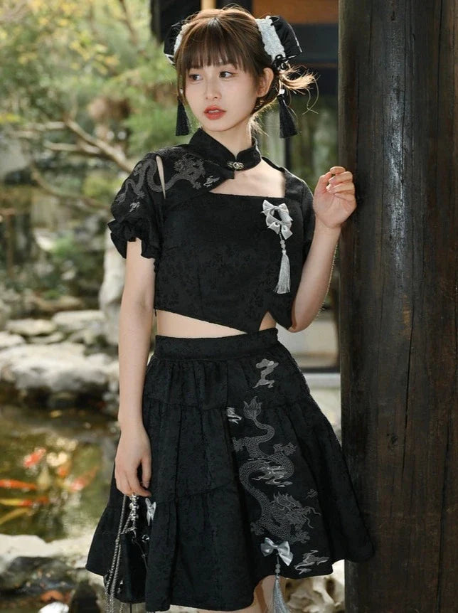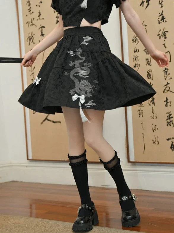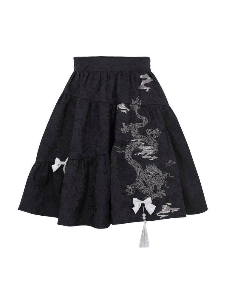 この愛らしいチャイナフレアドラゴンスカートは、ワードローブにキュートな雰囲気を加えたい方にぴったりです。ユニークなドラゴンプリントが、人混みの中でもひときわ目を引く存在感を放ちます。フレアデザインは快適なフィット感を提供し、どんな装いにも遊び心を加えます。